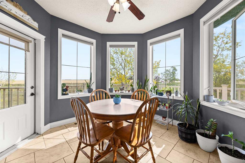 If you’ve been searching for a spacious country home with room for extended family, space for your animals, and breathtaking views of the coulee, this home with over 5200 square feet of living area is it! From the moment you step onto the inviting front deck overlooking the beautifully landscaped yard, you’ll feel at home. Inside, gleaming maple hardwood floors lead you into a sunken living room with a cozy wood-burning fireplace. The formal dining room flows seamlessly into a large kitchen featuring a central island with eating bar, stainless steel appliances, and a sunny breakfast nook framed by bay windows. Step out onto the wrap-around rear deck and enjoy sweeping views of the coulee—perfect for family meals and entertaining. The private owner’s retreat is a true sanctuary with a sitting area overlooking the coulee, a large walk-in closet, and a spa-like ensuite with a bubble jetted tub and separate shower. The main floor also includes three generously sized bedrooms, a 5-piece family bath with double vanity, a powder room, and a large laundry room complete with cabinetry, countertop, sink, and two walk-in pantries. The fully finished walkout basement offers incredible versatility with a private living space for extended family that includes its own kitchen, dining/sitting area, large bedroom with laundry-ready walk-in closet, a 4-piece bath, and patio access to the east yard. The rest of the lower level is designed for fun and functionality, with a media room, games room, craft/hobby workshop, and abundant storage. The entire basement can be used as part of the main house living space without any renovations needing to be completed. Outdoors, the fenced pasture with riding arena, two horse shelters, chicken coop with power and water, storage shed, dog run, and large garden provide everything you need for a country lifestyle. Extensively renovated in 2007, this home now boasts over 1,000 additional square feet, in-floor heat on both levels, high-efficiency furnace, boiler with hot water storage, and a manifold plumbing system. Major updates include septic system replacement (2008), rebuilt front deck, new rear deck stairs and door, new garage door opener, lower-level kitchen installation, upgraded lighting and electrical, and numerous cosmetic updates such as flooring, window coverings, paint, and bathroom upgrades. Over 50 trees have also been planted, adding to the property’s beauty and privacy. This unique property combines comfort, functionality, and country charm—ready for you, your family, and your animals to enjoy for years to come.