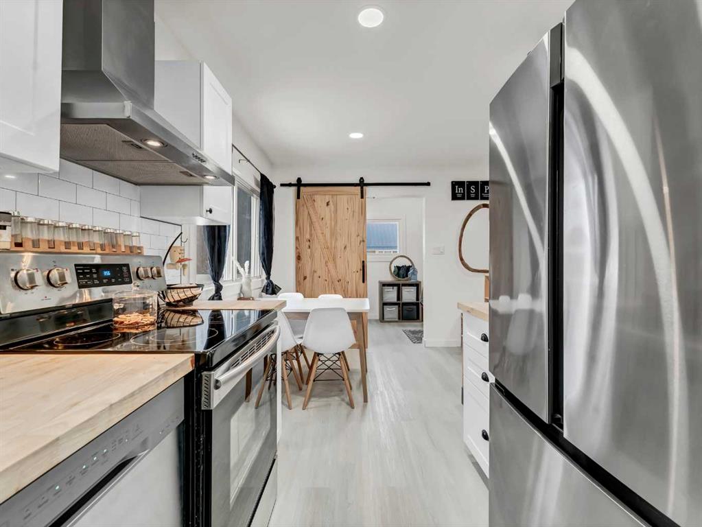 Experience Southwest Hill living at its best in this beautifully renovated, move-in-ready home. Set in a mature neighborhood, this home has been thoughtfully updated while keeping a comfortable, practical layout. Extensive upgrades include new insulation, drywall, plumbing, electrical, central air conditioning, appliances, as well as furnace and hot water tank (2020) offering peace of mind for the new owner. The main living area is bright and welcoming with plenty of natural light, flowing into the living space. The kitchen, chic yet efficient, features a stainless-steel appliance package, butcher block countertops, and a deep granite composite sink, making excellent use of the space. The main floor offers a bedroom and four-piece bathroom, along with a convenient main-floor laundry/mudroom area complete with wash sink. This area is separated from the kitchen and dining area by trendy barn door, adding both function and character to the space. Upstairs, you’ll find two additional bedrooms and a linen closet, keeping spaces organized and functional. The basement provides ample storage and remains undeveloped, offering flexibility for future plans. Outside, enjoy a spacious, fully landscaped backyard with mature trees, new vinyl fencing, underground sprinklers, and a deck perfect for relaxing or entertaining. Parking is well accommodated with a carport, single detached garage, and additional off-street parking at the front. Close to schools, parks, outdoor pools, and shopping, this home isn’t just updated—it’s designed for real life, ready to be enjoyed from day one.