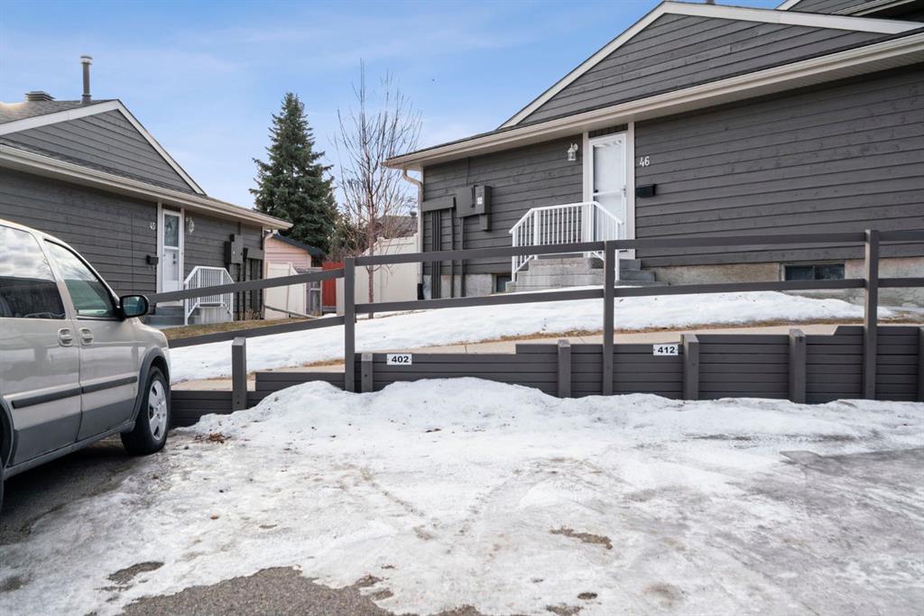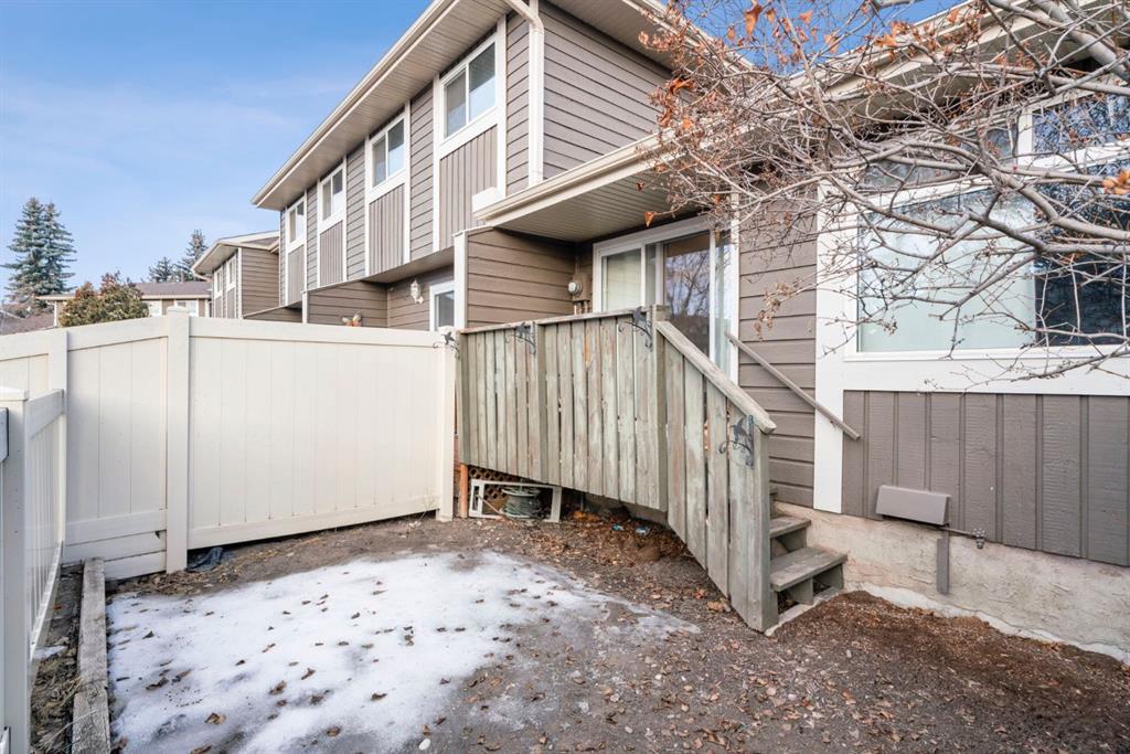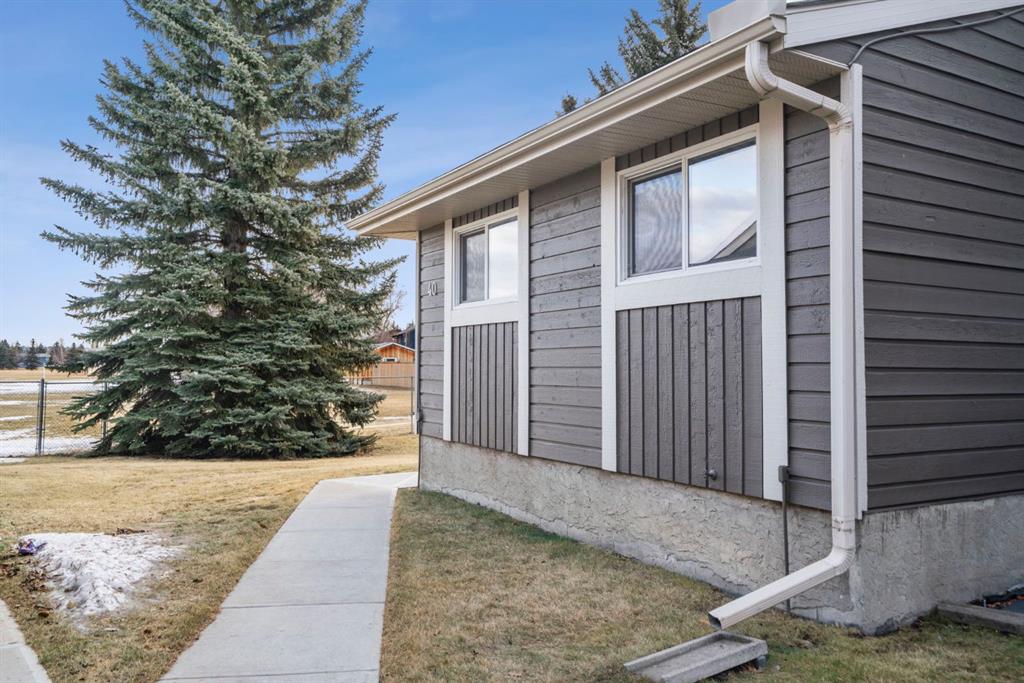 Opportunity knocks with this bungalow style townhome, a strong fit for investors or a handyman ready to add value. The main level offers a spacious one bedroom layout with the option to reconfigure back to two bedrooms, based on the original floor plan. A fully finished basement adds extra living space and includes an additional bedroom. Major mechanical updates include a newer hot water tank and furnace, helping reduce near term capital expenses. The home faces a school field, offering open views and added privacy. This private end unit features a fenced yard, ideal for tenants or future resale appeal. The property includes a four piece bathroom and two assigned parking stalls. Original finishes throughout provide a blank slate for renovation and customization. A solid value with upside for the right buyer. This complex is ideally located just minutes from Fish Creek Park, the Bow River, and Sikome Lake, with access to scenic pathways, parks and natural green space to explore.