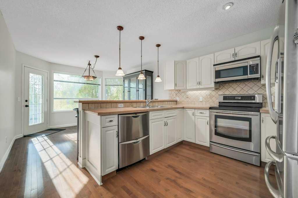 Located in the desirable community of Diamond Cove and tucked into a quiet cul-de-sac just steps from the Bow River and Fish Creek Park pathway system, this well-maintained home offers five bedrooms, two and a half bathrooms, central air conditioning, and an attached heated garage with epoxy flooring. Set on a 6,700+ sq. ft. lot, the southwest-facing backyard features mature trees, no direct neighbours behind, and backs onto a small greenspace and lane, creating a private and peaceful outdoor setting. The main level includes a bright living room with bay windows and hardwood flooring, a kitchen with stainless steel appliances and a breakfast bar, and a dining area that opens to the large balcony. The balcony is finished with composite decking and has stairs leading directly to the expansive backyard. Three bedrooms are located on this level, including the primary with a four-piece ensuite and walk-in closet, along with a two-piece bathroom with a rough-in for a shower. The fully developed lower level offers large windows, two generously sized bedrooms with walk-in closets, a full bathroom, and a spacious recreation room with a gas fireplace. There is excellent storage throughout, including a dedicated storage closet and a large laundry/mechanical room. Recent updates include fresh interior paint, blown-in insulation in the garage attic, and plumbing upgrades throughout the home. A move-in ready property in a sought-after location close to parks, pathways, schools, amenities, and major routes.