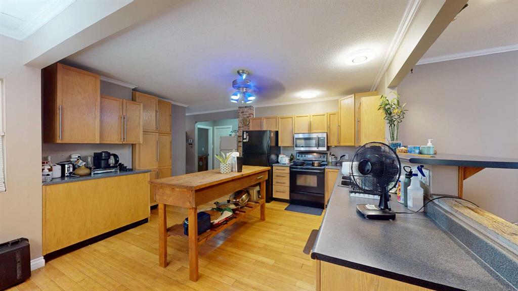 Excellent investment opportunity in the heart of Lac La Biche! Located at 9119 100 Street, this well-maintained revenue property is ideally situated close to Portage College and the hospital, making it highly desirable for tenants. The upper-level unit features 3 bedrooms, including an oversized primary bedroom complete with a spacious walk-in closet and a beautifully appointed 4-piece ensuite with soaker tub. Bamboo flooring runs throughout, complementing the bright kitchen and the comfortable living and dining areas. The upper unit also enjoys exclusive use of a generous, fenced backyard with mature trees, a 25’ x 10’ deck accessed through a patio door, rear alley access, and access to the garage. The basement contains two additional (legal) self-contained rental units, each with a private entrance and their own laundry. One unit offers approximately 600 sq. ft. of living space with 1 bedroom, while the third unit is also a nicely appointed 1-bedroom legal suite. With three independent units, strong tenant demand, and a cap rate of approximately 8%, this property offers excellent cash-flow potential. Current tenants are happy to stay, making this a turnkey investment you won’t want to miss.
