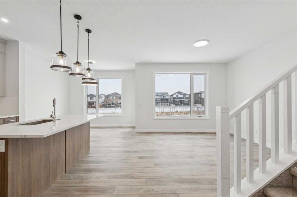 Welcome to The Mitchell by NuVista Homes, located at 257 Dawson Wharf Road in the desirable community of Dawson’s Landing, Chestermere. This thoughtfully designed 1,874 sq ft home offers 3 bedrooms and 2.5 bathrooms with a functional layout ideal for modern family living. The main floor features 9’ foundation and ceiling heights, luxury vinyl plank flooring, a flex room, and a bright great room that flows into a well-appointed kitchen with quartz countertops, taller upper cabinets, and a dedicated spice kitchen. Both the mudroom and front foyer include built-in benches for added everyday convenience. Upstairs, the primary bedroom includes a walk-in closet and private ensuite, complemented by two additional bedrooms, a full bathroom, a media room, and upper-floor laundry. A side entrance provides excellent future basement development potential, while the 12’ x 10’ rear deck is perfect for summer enjoyment.