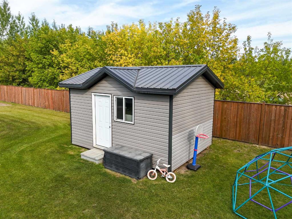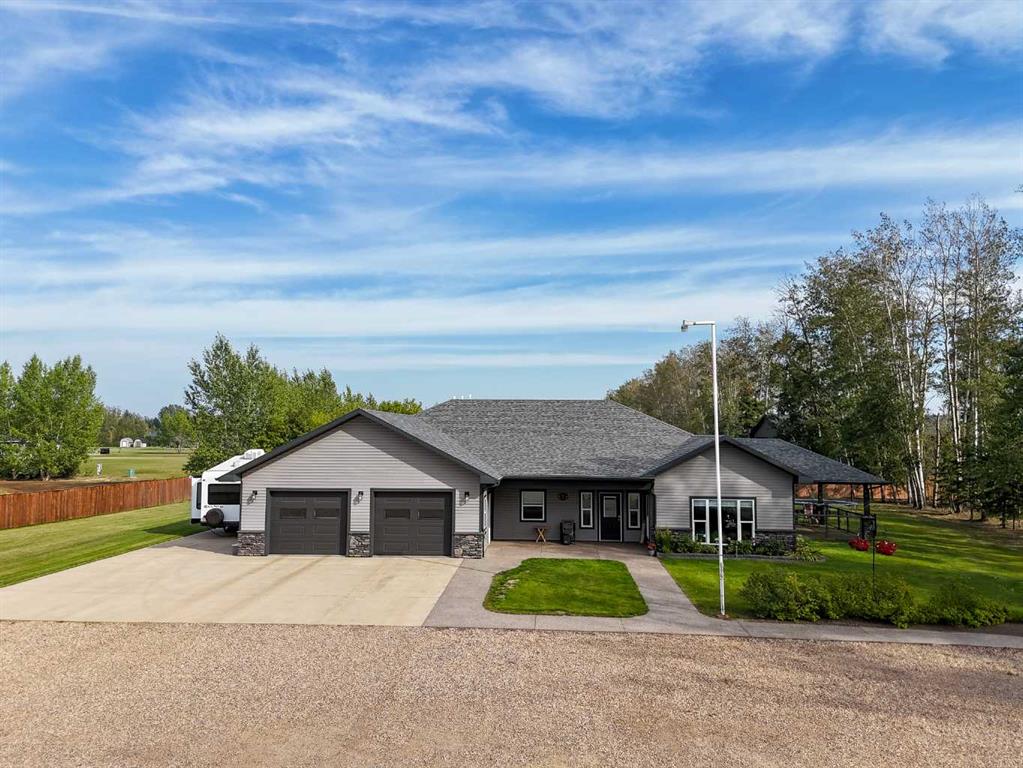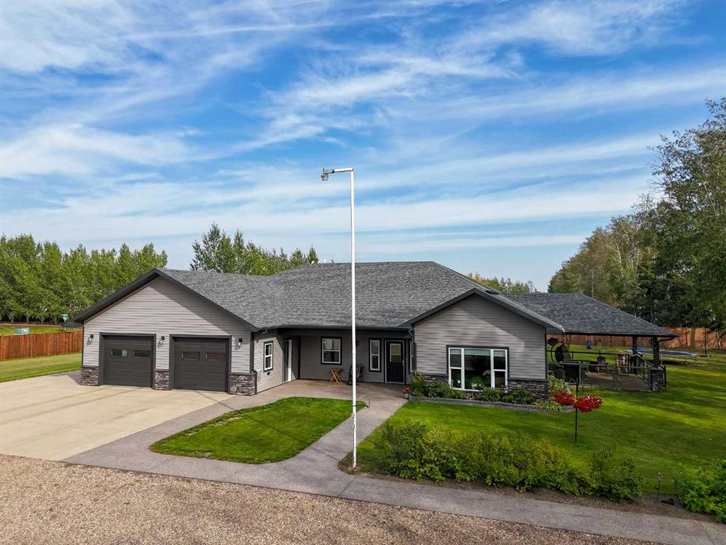 Experience country living at its finest with this exceptional 3.16-acre property, featuring a 2,374 sq. ft. residence paired with a premium heated shop. The home showcases thoughtful design and high-end finishes throughout, including a spacious primary suite with a luxurious ensuite, generator backup for peace of mind, central A/C, and a covered deck ideal for relaxing or entertaining. An oversized garage adds convenience, while a dedicated playroom provides space for family or guests. Outdoors, the property offers a partially fenced yard for privacy, a large gravel pad, and room for pasture or horses, creating endless possibilities. The impressive shop is designed with in-floor heating across three zones, ensuring year-round comfort, and includes a well-equipped workshop, bathroom, and extensive storage space. Every detail has been carefully considered, offering both functionality and elegance in a setting that balances rural tranquility with modern comfort.