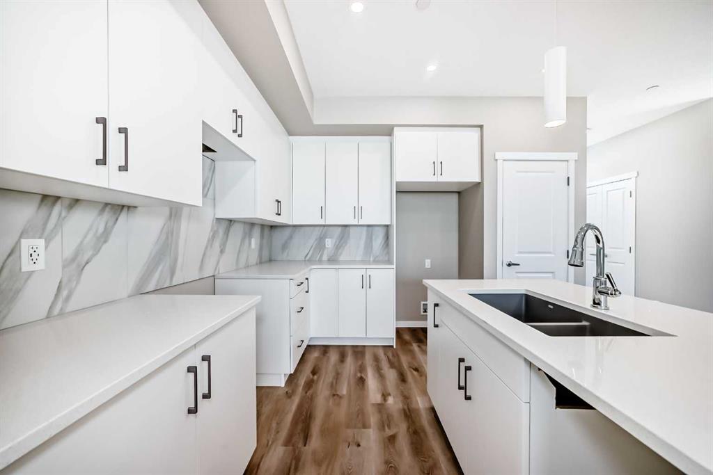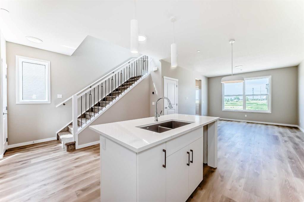Step inside and feel right at home in the Barwell—a thoughtfully designed laned home that strikes the perfect balance between style, function, and comfort. With 1,515 sq ft of well-planned living space, this brand-new residence in the vibrant community of Hotchkiss checks all the boxes for modern family living. The main floor welcomes you with 9’ ceilings and durable luxury vinyl plank flooring throughout. A spacious front living room flows effortlessly into the heart of the home—an L-shaped kitchen featuring sleek quartz countertops, contemporary cabinetry, and a large dining area that’s perfect for gatherings. Tucked just off the kitchen is a convenient pocket office, ideal for remote work or managing your day-to-day. Upstairs, you’ll find a functional layout with three well-sized bedrooms, including a spacious primary retreat complete with a tile-to-ceiling ensuite shower that adds a touch of luxury to your daily routine. Additional features include painted spindle railings on the main level, knockdown ceiling texture, and a side entrance provides options in the future for a basement suite (A secondary suite would be subject to approval and permitting by the city/municipality) providing the perfect spot for extended family or rental income. Additionally the basement features a wet bar rough-in already in place, making it easy to plan out your dream basement. **This home also comes complete with full front and backyard landscaping, including sod, mulch on the side yards, and trees/shrubs in the front as per community guidelines. Enjoy warm summer evenings in the west-facing backyard, or take advantage of the exterior gas line for future BBQs. Whether you\'re a growing family or a savvy investor, this home offers long-term value in one of Calgary\'s up-and-coming communities. Hotchkiss is a new southeast Calgary community designed for those who crave space, connection, and outdoor living. With easy access to major roadways, future planned amenities, and nearby parks and pathways, it’s a neighbourhood that blends natural beauty with city convenience. Whether you\'re headed to work or the mountains, Hotchkiss puts you in a prime location to live your best Calgary lifestyle.