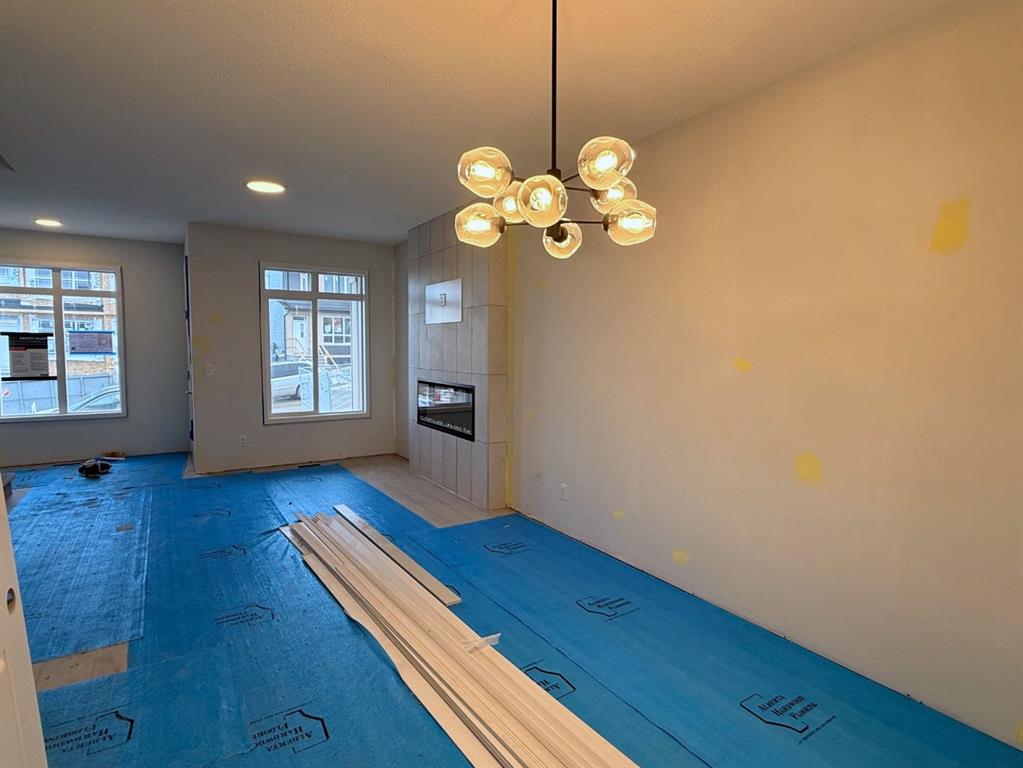 Welcome to this brand new MORRISON HOMES 1,374 sq. ft, Indigo II model home in Glacier Ridge, thoughtfully designed for modern living and future flexibility. Featuring 3 bedrooms, 2.5 bathrooms, and a sunny North West-facing backyard, this home offers a bright, functional layout in a growing, family-friendly community. The main floor showcases upgraded laminate flooring, and an open-concept great room anchored by a sleek electric fireplace, creating a warm and inviting space to relax or entertain. The gourmet kitchen is a standout with quartz countertops, stainless steel appliances, stylish cabinetry, and plenty of prep space with a spacious island —perfect for everyday living and hosting alike. Upstairs, you’ll find upgraded carpet, a spacious primary retreat with a private ensuite featuring quartz counters, dual sinks and shower, plus two additional bedrooms and a full bathroom—ideal for families, guests, or a home office setup. Washer and dryer are included for added convenience upstairs. The home also features an Exterior Side Entry, 9’ foundation, rough-ins for a future secondary studio suite (with City of Calgary permits and approvals), offering excellent potential for added value or income opportunities. Step outside to enjoy the 10’ x 10’ deck with stairs to grade, complete with a gas line for a future BBQ, and a 20’ x 22’ concrete parking pad ready for your finishing touch. Ideally located close to parks, the community centre, and quick access to 144 Avenue, this home blends comfort, style, and smart planning in one exceptional package. A fantastic opportunity to own brand new in Glacier Ridge—move in and make it yours.