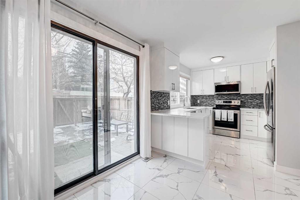 Welcome to 43 - 5019 46th Avenue SW. A beautifully upgraded, spacious, and light-filled home that is truly move-in ready. Thoughtful attention to detail is evident throughout, with flat ceilings, quartz countertops, luxury vinyl plank flooring throughout, upgraded vinyl windows, and newer high efficient furnace and hot water heater. Step outside to your private, fully fenced backyard—an inviting summer sanctuary complete with blooming flowers, climbing vines, and returning robins year after year. A built-in sprinkler system keeps the space effortlessly lush and green, while the charming rose garden out front adds instant curb appeal. Inside, the luxurious kitchen features soft-close cabinetry, Samsung stainless steel appliances, and generous counter space—perfect for everyday living and entertaining. The open-concept living and dining area is warm and welcoming, highlighted by a cozy electric fireplace framed in quartz. Custom wrought iron and wood railings add character and craftsmanship to the staircase. Upstairs, you’ll find two generously sized bedrooms, including a primary retreat with a two-piece ensuite. a large closet and mountain views. An open loft on this level offers a versatile space ideal for a home office, reading nook, or yoga area. The basement provides ample storage and convenient step-free access to the heated attached garage. Completing the picture are quiet neighbors on both sides and a safe, friendly complex where residents genuinely look out for one another—creating a peaceful, welcoming place to call home. Call today for you private viewing!