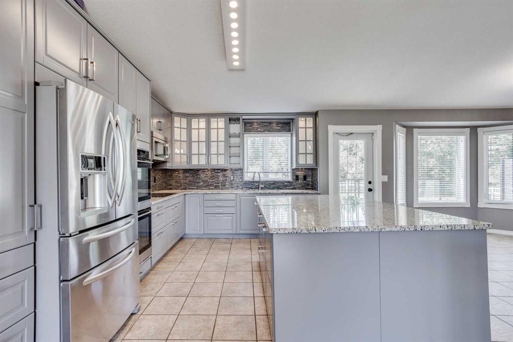 Nearly 1 ACRE! TREE-LINE PROPERTY! 2 GARAGES! This one-of-a-kind property perfectly blends spacious country living with modern amenities and exceptional functionality. Situated on a beautifully landscaped and fully fenced lot, this home features two garages—a triple attached, in-floor heated drive-through garage and a separate double detached garage—as well as RV parking with full hook-ups. Inside the main home, you\'ll find over 3,000 sq. ft. of finished living space. The main floor offers a bright office, three generous bedrooms including the primary bedroom with dual closets and a 4-piece ensuite. The main floor is made up with a total of and three full bathrooms in total. The beautifully updated kitchen, renovated in 2016, showcases granite countertops, stainless steel appliances, and a massive island that opens to a spacious dining area with direct access to the expansive back deck. A cozy living room and convenient main floor laundry complete this level. The fully developed basement adds even more living space, featuring two additional bedrooms plus a den, and a custom-designed bathroom with a walk-in shower and dual sinks. There’s also a large rec room with a wet bar perfect for entertaining—as well as plenty of storage throughout. A standout feature of this property is the self-contained illegal suite located above the garage. This illegal suite is separately heated and includes three bedrooms, a full bathroom, a full kitchen with stainless steel appliances and an island, its own laundry, a private living area, and access to a balcony that overlooks the front yard—ideal for enjoying quiet mornings. The backyard is your private retreat, complete with vinyl fencing, beautifully landscaped green space, multiple large decks, a dedicated dog run, the second garage, a fire pit area perfect for entertaining, a concrete pad ready for a hot tub, and ample room to enjoy the outdoors. Additional highlights include central air conditioning for both the main home and the suite, newer shingles (2018), in-floor heating with three zones in the attached garage, and a breezeway that connects the home to the garage for convenient, year-round access. This is truly a rare opportunity to own a versatile, feature-rich property that offers space, comfort, and value. Don’t miss your chance to see it—book your private tour today!