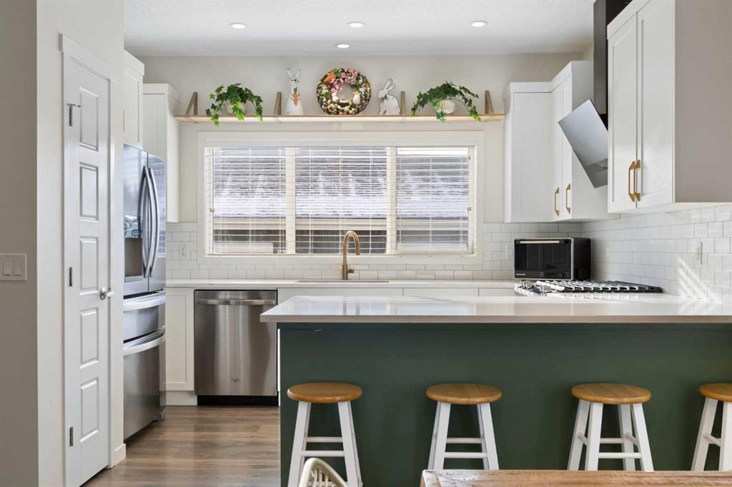 Set on a prime corner lot at the end of a quiet cul-de-sac, this home offers the kind of privacy and “no through-traffic” setting families love—while the extra corner-lot windows bring in noticeably more natural light. Add in the sun-soaked south-facing backyard and you’ve got a property that feels bright, warm and welcoming. From the moment you arrive, it’s clear this home has been thoughtfully upgraded and beautifully maintained. Fully finished on all three levels with over 2,200 sq. ft. of designer-finished living space, it offers both the function you need and the style you want. The main level is both comfortable and inviting, anchored by a spacious living room overlooking the quiet front street. At the back of the home, the sunny south-facing kitchen overlooks the landscaped yard, keeping you connected to outdoor living while you cook, entertain, or keep an eye on the kids. The kitchen is finished with quartz countertops, a gas stove and bar seating that naturally becomes the gathering spot for family and guests. The dining area flows seamlessly with the kitchen and living space, creating an open layout that works well on busy mornings and for holiday meals. A bonus is the private office, complete with built-in workspace—ideal for working from home or homework time. A functional mudroom with custom millwork rounds out the main floor. Upstairs, the primary bedroom is a standout. This isn’t just a place to sleep—it’s a space that’s been elevated with extensive custom built-ins and cabinetry, offering a clean, finished look and serious storage. A walk-in closet and a spa-like 5-pce ensuite complete the retreat. Two additional generously sized bedrooms provide flexibility for kids or guests and the laundry room includes extra storage to keep everything tidy and efficient. The basement is finished to match the rest of the home, here you’ll find a comfortable fourth bedroom, a separate hobby room perfect for crafts, home gym, or workspace and a rec area anchored by a custom media unit and built-ins—ideal for movie nights, gaming, or creating a second hangout area for the family. With an additional bathroom and smart storage, this level is set up to handle everything from guests to growing families. Outside, the backyard is a true highlight—fully landscaped and thoughtfully designed for entertaining and everyday enjoyment with a raised deck and lower patio, creating multiple areas to barbecue, lounge, and soak up the sun. The oversized heated double garage on the paved back lane is a rare bonus, and the large paved area beside it is the perfect “kids zone” for shooting hoops, road hockey, or outdoor games—letting them play safely without being out on the street. Packed with upgrades including Gemstone lighting, California Closets built-ins, air conditioning, and underground sprinklers, this home checks every box. And the location ties it all together: steps to the wetlands, close to schools, parks, pathways and the unbeatable year-round lake lifestyle.