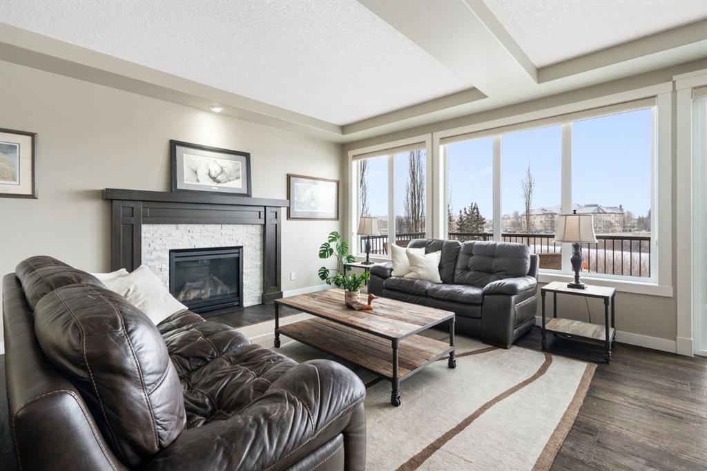 Located in the Estate section of Mckenzie Towne on a quiet street with a picturesque pond as your backdrop, this custom-built home features four bedrooms and four bathrooms across nearly 4,400 sq. ft. of developed living space. Arriving at 52 Elgin Estates View, you will be impressed by the stunning curb appeal, Gemstone lighting, and an oversized, heated triple-car garage with epoxy floors. Inside, the formal foyer leads to a generous main-floor office with French doors. The stunning white kitchen is equipped with quartz countertops, a six-burner gas range, stainless steel Bosch appliances, and a walk-through pantry. Adjacent to the kitchen is a spacious living room with a gas fireplace and a large dining area. The back of the home is flooded with natural light through expansive windows, offering access to a vinyl deck with beautiful east-facing views of the pond. The main floor is completed by a large mudroom with direct garage access and a powder room with granite countertops. Upstairs, you will find a bonus room, two secondary bedrooms, and a five-piece bathroom. The primary bedroom offers impressive proportions and additional pond views. The primary ensuite serves as a perfect retreat with a double vanity with granite countertops, a large tub, and a spacious standalone shower. A large walk-in closet provides direct access to the laundry room, which is also accessible from the hallway. The walkout basement is an entertainer’s dream, featuring a wet bar, a large entertainment space for movie nights or sports, and room for a pool table. This level also includes a fourth bedroom, a four-piece bathroom, and additional storage. Outside, the ground-floor covered patio features stamped concrete and an automatic bug screen for summer comfort. The professionally landscaped backyard includes an in-ground sprinkler system and direct access to walking paths around the pond. Additional features include dual-zone furnaces, two AC units, new hot water tank (2025), Gemstone lighting and Hunter Douglas blinds. This property is located on a quiet street and is just steps from a large soccer field, all the shopping and amenities one could need and easy access to major road ways all while being nestled on a quiet pond.