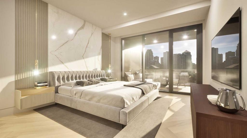 Only a few Broadview\'s left in the entire project! Welcome to your dream single-level residence in the sky overlooking the river at The Kenten. Masterfully designed by architects Davignon and Martin, The Broadview is designed to give Calgarians an inner-city experience without sacrificing the comforts appreciated in an executive home. At 48 feet of unobstructed frontage, this could be described as having a city lot in the sky to build your custom home. As you step in, you are greeted by grand living space with floor to ceiling triple-pane windows; a 22 foot wide spacious open concept kitchen, living, and dining rooms designed to entertain your family and friends. Enjoy a gourmet kitchen with Sub-Zero & Wolf appliances including a dedicated fridge and freezer, a butler\'s pantry, an abundance of storage, a bar, wine wall, and fireplace that all flow towards your opening wall system. Step out onto your 200 square foot terrace overlooking the beautiful Bow River. Enjoy a spacious primary bedroom with custom millwork, 3 closets including a walk-in closet, and 6 piece ensuite bathroom with a floating tub, heated floors, and double shower with steam. The second bedroom comes with a built-in murphy bed, with a built-in closet and room for a desk, along with an en-suite bathroom. An additional 2 piece bathroom and laundry room complete the residence accompanied by 2 bike racks, 2 titled storage lockers, and 2 titled parking stalls. There are 3 Modern palettes to customize your residence from. The Kenten features over 8,000 square feet of amenities including a sky lounge, gym overlooking Kensington, golf simulator, sauna, hot tub, concierge, guest suites, car wash, and more. Explore a simplified lock and leave lifestyle you didn\'t know was possible, with 250+ shops and restaurants in Kensington and river pathways stemming from one end of the city to the other. With only a few residences remaining of 44 residences, don\'t miss this once in a lifetime opportunity to live at the most interesting corner in Calgary.
