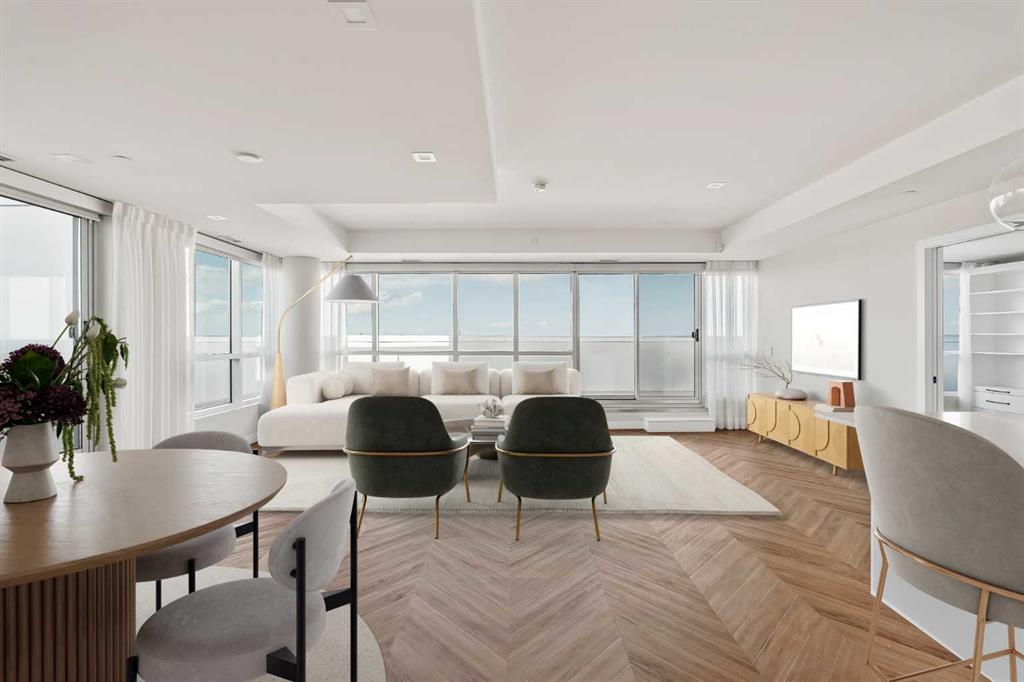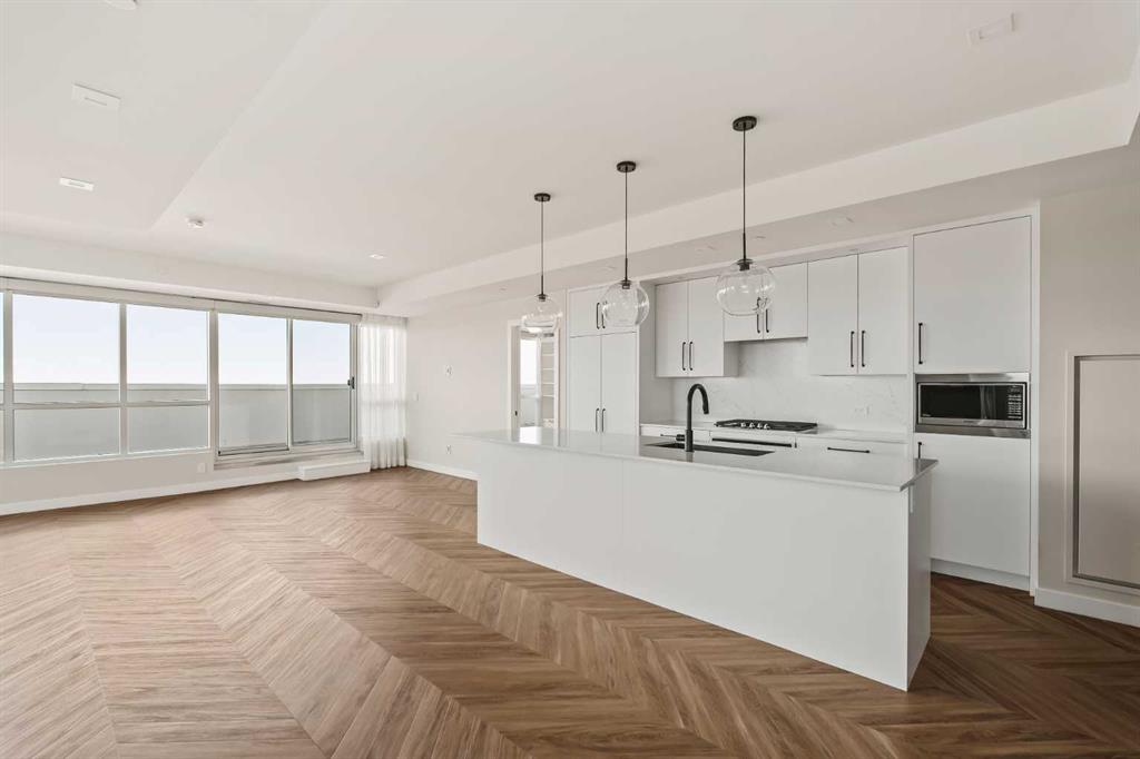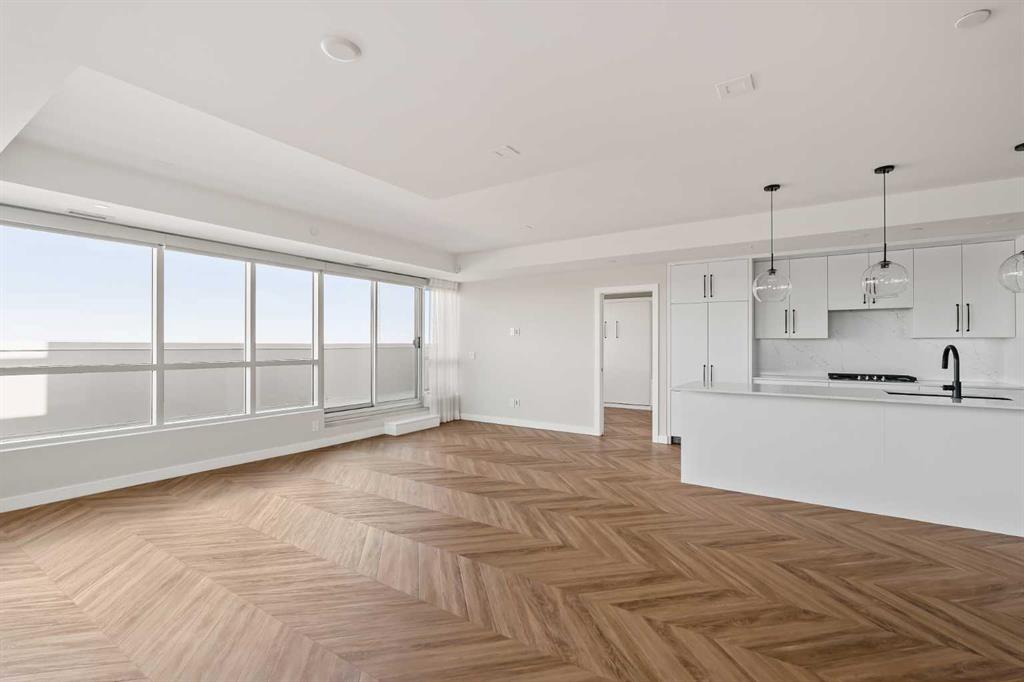 Proudly presenting Suite 717, the most coveted West facing corner penthouse in the prestigious Gateway buildings. This extraordinary home offers stunning panoramic mountain views, evening sunsets, impeccable custom upgrades, and a lifestyle of sophistication and comfort. Thoughtfully designed, the home features electric blackout blinds on all windows, a high-end security system with burglar-proof locks, and a versatile main floor with a custom Murphy bed, built-in office, two separate office spaces, refined window treatments, a customized laundry room, and comfort-raised toilets. The gourmet kitchen is a true showpiece, boasting a single bowl sink, garburator, oversized globe pendant lights, dimmable lighting, and upgraded pull out waste bins. Additional luxuries include two premium parking stalls directly outside of the elevator, two storage lockers, accessibility features throughout, and a bonus spacious in suite storage area under the stairs. This penthouse also comes with air conditioning, chevron flooring, quartz countertops, LED square pot lights, solid core doors, soft close drawers, and a gas line on the patio. Built in 2019 with concrete construction and exceptional soundproofing, this boutique style building is unlike anything else in the city. Residents enjoy access to a rooftop patio, stylish residents\' lounge, concierge service, visitor parking, EV chargers, and secure bike storage. Located in the Trendy West District this property is steps from Sobeys, Big T\'s BBQ, UNA Pizza, Deville Coffee, F45 Gym, Hankki, YYC Cycle, and more, with quick access to Old Banff Coach Road, Stoney Trail, and nearby mountain escapes. The fast growing West District will soon offer over 1 million square feet of retail and commercial space, designed for a walkable lifestyle with 20-ft sidewalks and bike paths. Just 15 minutes from downtown, 5 minutes to Winsport, and 60 minutes to the Rockies, Suite 717 offers unmatched urban convenience with a breathtaking natural backdrop. Book your showing today!