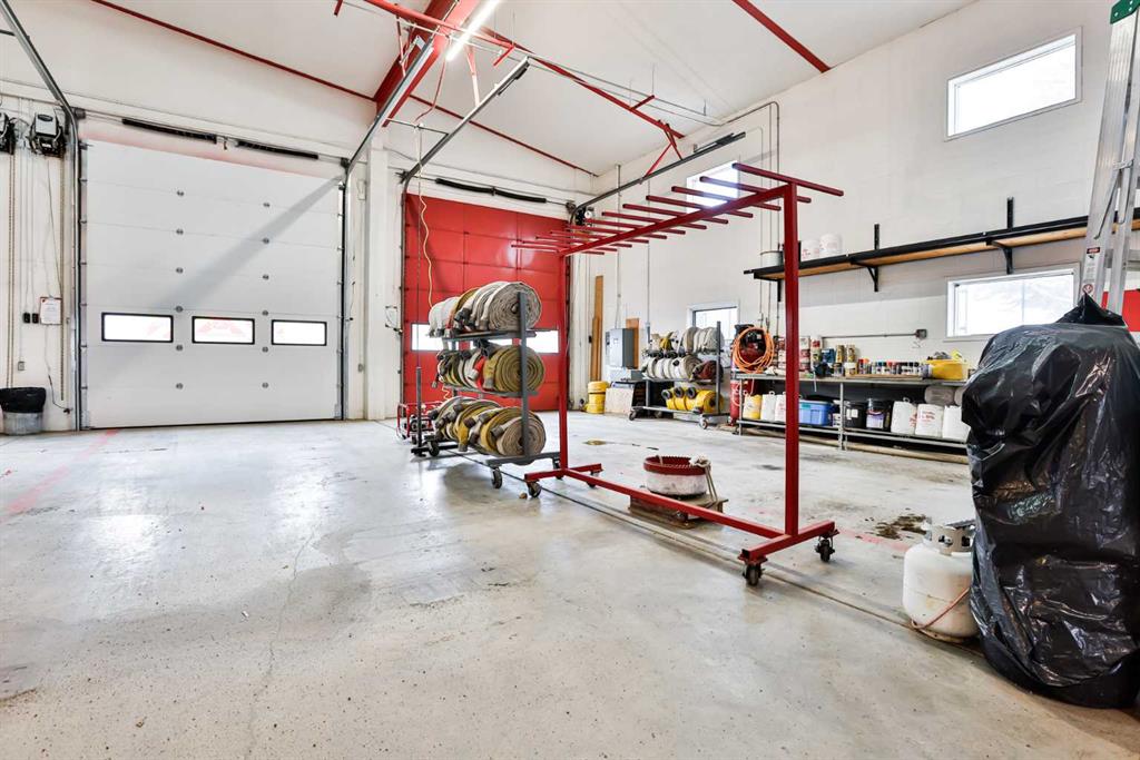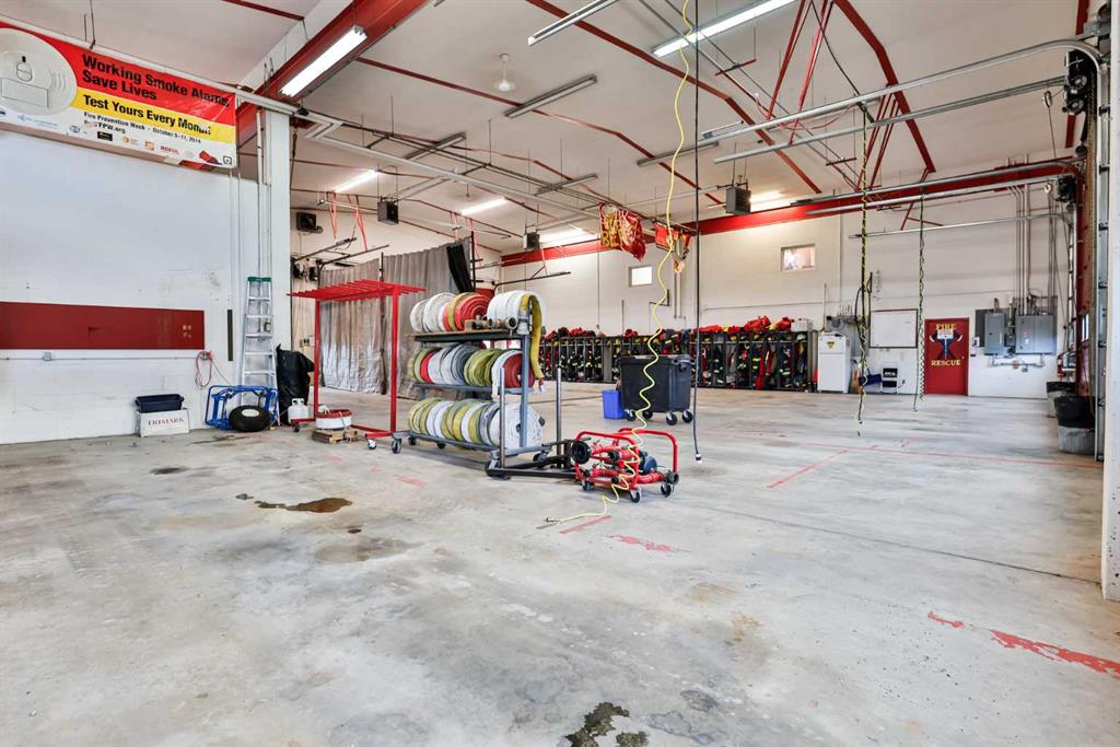 With strong visibility and flexible use potential, the building and property has been the site of the town fire hall and emergency services operations for many years. The property currently features approximately 5,874 sq. ft. on the main floor with a finished reception area, open lounge and kitchen, and two five-piece washrooms. The 1,420 sq. ft. mezzanine includes three offices, a boardroom, and two additional rooms, with separate exterior stair access at the rear.