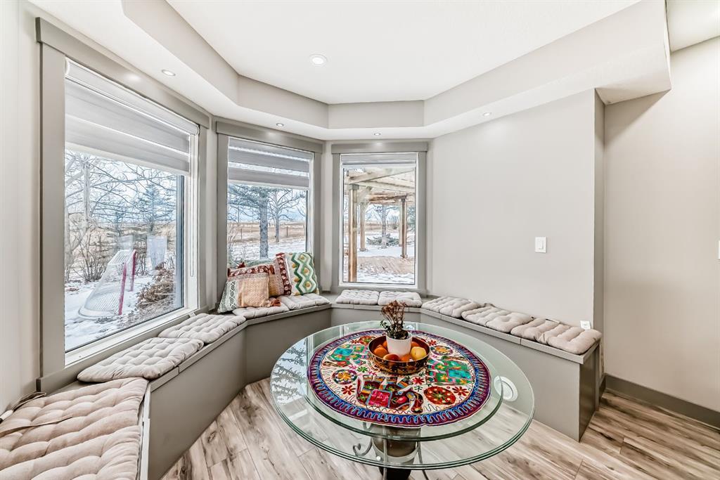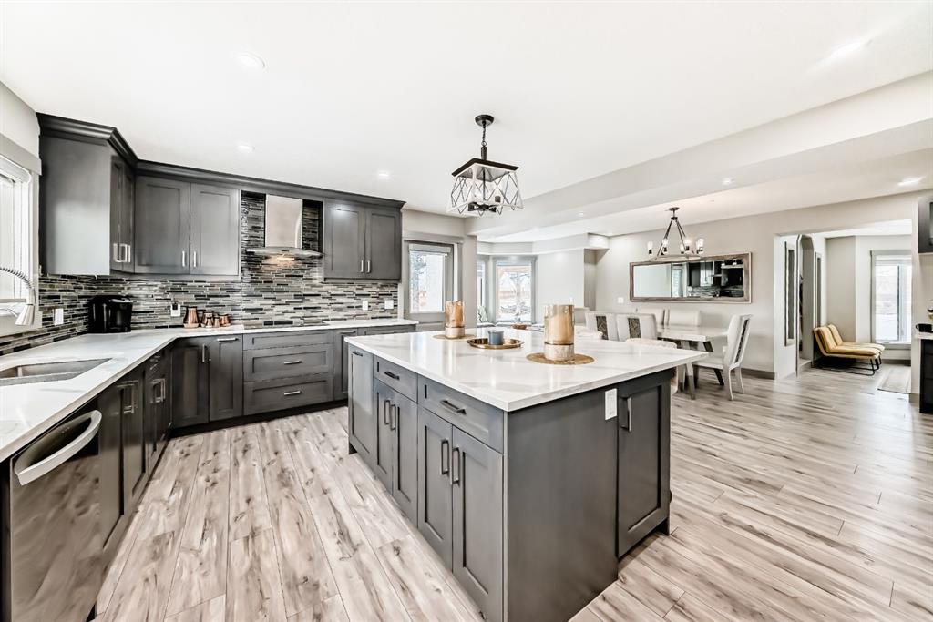 Set on 4 acres of lush, tree-lined land, this extraordinary estate offers privacy, presence, and prestige—just minutes from Calgary. Boasting over 5,500 sq. ft. of beautifully designed living space, this home underwent a major permitted expansion and renovation in 2021, resulting in a residence that feels both grand and entirely modern. Extensive upgrades include a brand-new septic system, Lux windows and doors, updated electrical, plumbing, heating, insulation, drywall, ceilings, lighting, and concrete sidewalks and patios surrounding the home. Additional features include a Culligan water softener and filtration system, three new furnaces, a new hot water tank, and new appliances—all still under warranty. A commercial-grade gas range with electric oven, plus two outdoor gas hookups for BBQs, further elevate the home’s functionality. Simply put, the upgrades are too numerous to list—this property must be experienced in person. The striking front entrance makes an immediate impression and opens to a thoughtfully designed main level. Here you’ll find a spacious den, a sunken living room, two generous dining areas, and an expansive chef’s kitchen complete with a large island, built-in bench seating, and a fully equipped spice kitchen. A cozy family room, two powder rooms, and a practical back entry with garage access and built-in coat and shoe storage complete the main floor. A stunning curved staircase leads upstairs to five bedrooms and four bathrooms. The upper level features two luxurious primary suites—one with double doors, a private sitting area, a 5-piece ensuite with jetted tub, and walk-in closet; the other with a 4-piece ensuite and walk-in closet. Three additional bedrooms include two with attached bathrooms and one serviced by a separate full bath. Two loft spaces add versatility: a large loft with fireplace and balcony overlooking the front yard, and a smaller loft ideal for a home office or study area. The upper floor also includes a convenient laundry room with ample storage, plus a small den perfect for a prayer room, playroom, or quiet retreat. The fully developed basement (illegal suite) has its own separate entrance and offers two bedrooms, a full bathroom, a living area, and a kitchen with an induction cooktop—ideal for extended family or guests. Positioned to capture sunlight throughout the day, the home is filled with natural light thanks to oversized windows throughout. Multiple driveways and a heated four-car garage provide exceptional convenience.