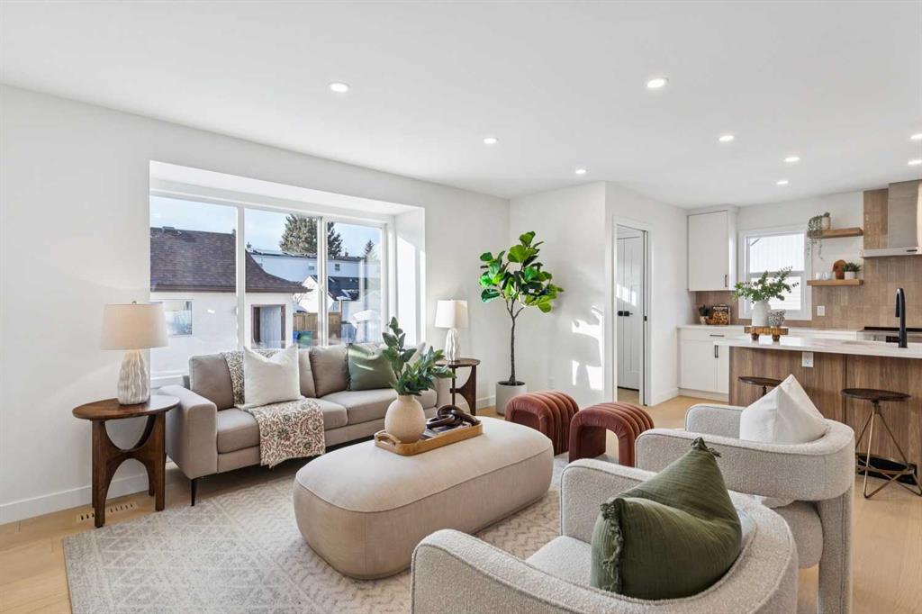 AMAZING Renovated with an addition, half duplex on one of Garrison’s most desirable streets, featuring a sunny west-facing backyard and exceptional inner-city lifestyle. Thoughtfully redesigned with high-end finishes, abundant natural light, and a functional floorplan ideal for modern living. Steps to parks, river pathways, Sandy Beach, and minutes to Marda Loop, Altadore, and downtown. Located on one of the most desirable streets in Garrison, just footsteps from the park and featuring a sun-filled west-facing backyard. Natural light flows beautifully throughout the home, showcasing a thoughtful, high-end renovation and a newly redesigned, highly functional floorplan ideal for elevated lifestyle living. The upper level offers two generous bedrooms, including an enlarged primary retreat, complemented by a newly added, spacious shared bathroom with refined finishes. The main level is exceptional, featuring elegant two-tone cabinetry, expansive quartz countertops, designer tile, and an abundance of natural light, all grounded by rich Canadian hardwood flooring that creates a warm yet sophisticated setting for entertaining and hosting. Structural beams added in order to provide an Open concept Living/kitchen/dining area which are perfect for living Inner City! The living room overlooks the private, sunny west backyard and offers seamless access to the double garage, and LARGE FULLY FENCED YARD, enhancing both comfort and convenience. A stylish powder room with a custom vanity and back access closet add on the essentials! The fully developed basement (Media area/games area) carpeted for comfort and MASSIVE WINDOWS enhance the space with light, creating an airy and welcoming atmosphere, a third bedroom, a beautifully appointed walk-in tiled shower with glass enclosure and designer accents, additional storage, and all new mechanical systems including a new furnace, updated electrical, on-demand hot water, new washer and dryer, and a new water line connection to the city. Roof shingles are approximately three years old. Truly a GEM!