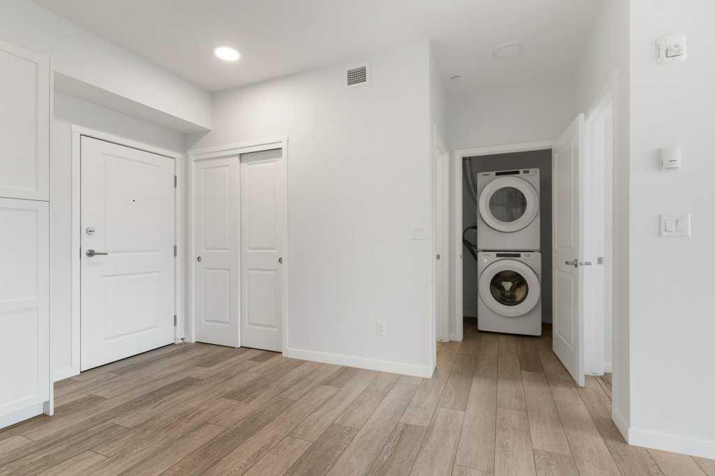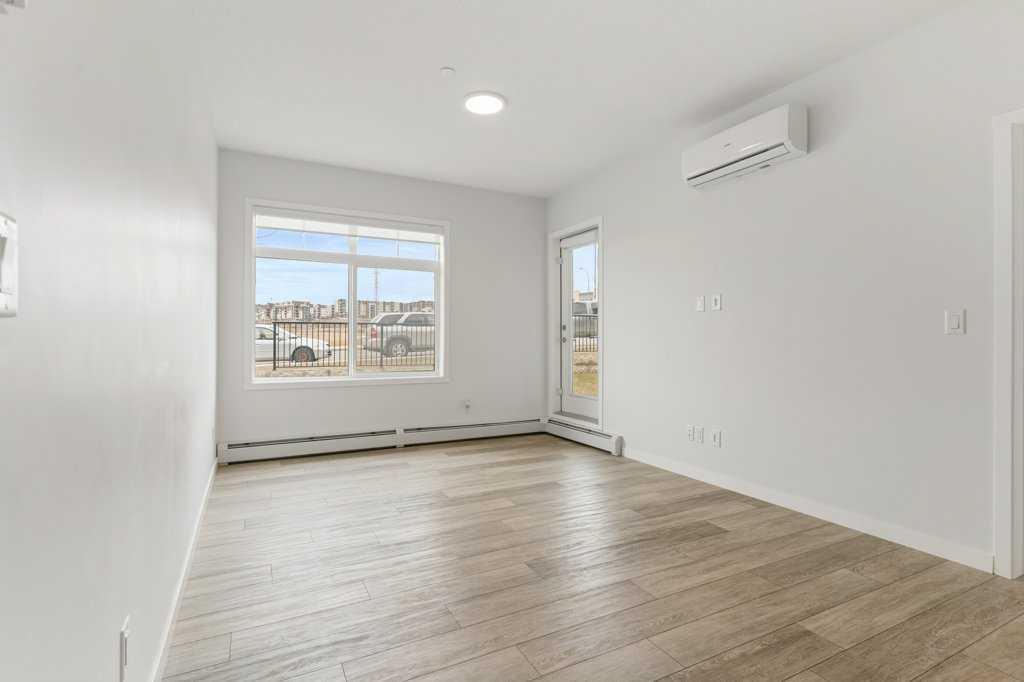 Gorgeous unit with AIR-CONDITIONING in popular Sage Hill. This open concept main floor 2 bedroom, 2 bathroom condo located in the well maintained \"Mark 101\" by Shane Home is walking distance to shopping and amenities! Features include 9 foot ceilings, Luxury Vinyl Plank flooring and quartz counter tops throughout , vinyl windows with sleek blinds, and in-suite laundry. In the well appointed kitchen , there are white cabinets, quartz countertops, modern white subway tile backsplash and stainless steel appliances. Opening on to the kitchen is the family room with large windows and a patio door leading to your private spacious main floor patio, with gas line roughed in. The primary bedroom has an en-suite bathroom and large walk-thru closet. The second bedroom is across the hall from the stylish 4 piece bathroom, and both are located on the other side of the family room from the primary allowing for maximum privacy. This unit also includes 1 titled underground parking stall, a storage locker, and there is secure bike storage available in the parkade. Condo fees are affordable and include heat/water/sewer. Located just steps away from public transit, shopping, restaurants, and many other amenities, this is a GREAT place to live OR a wonderful investment property.