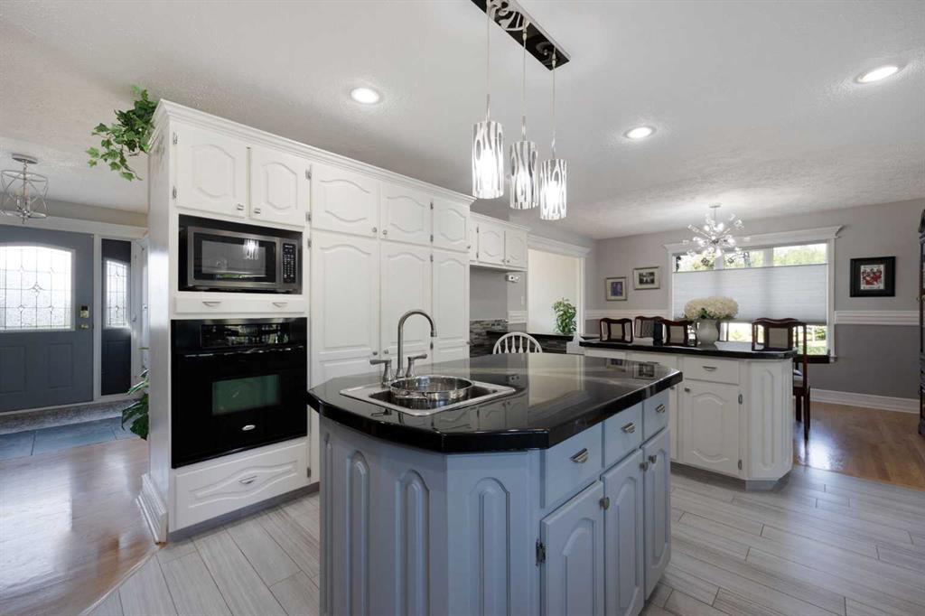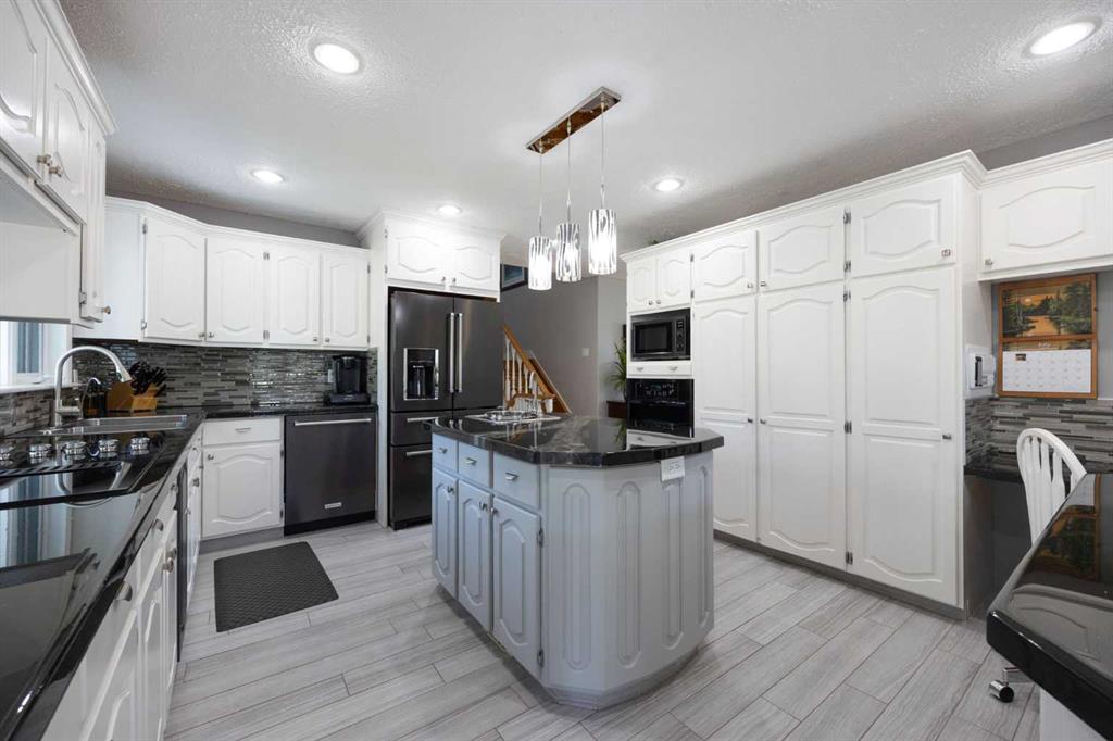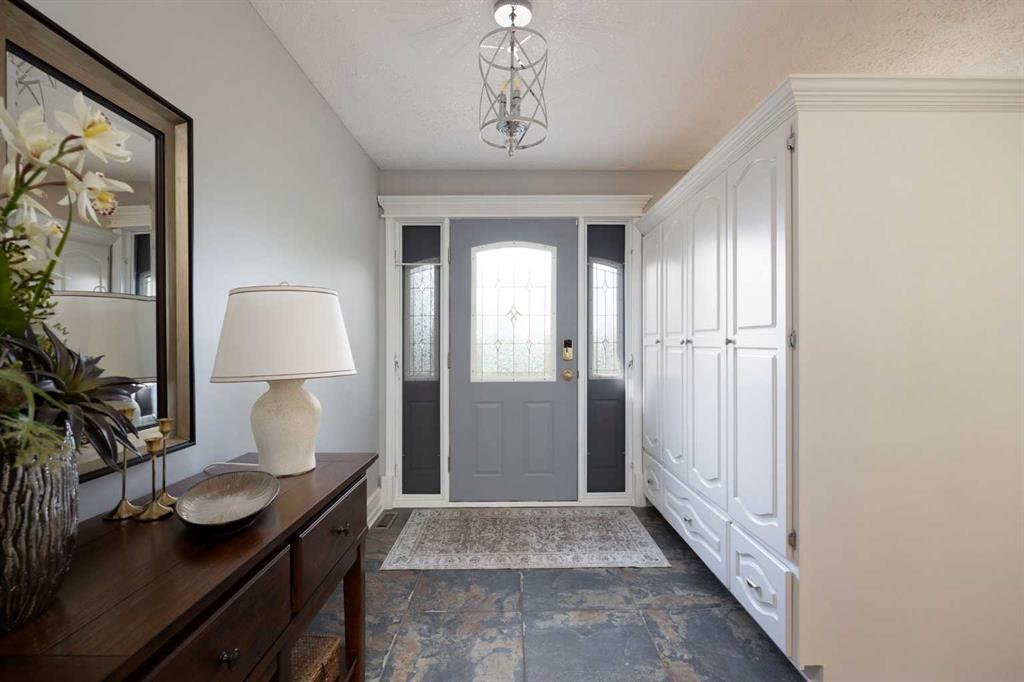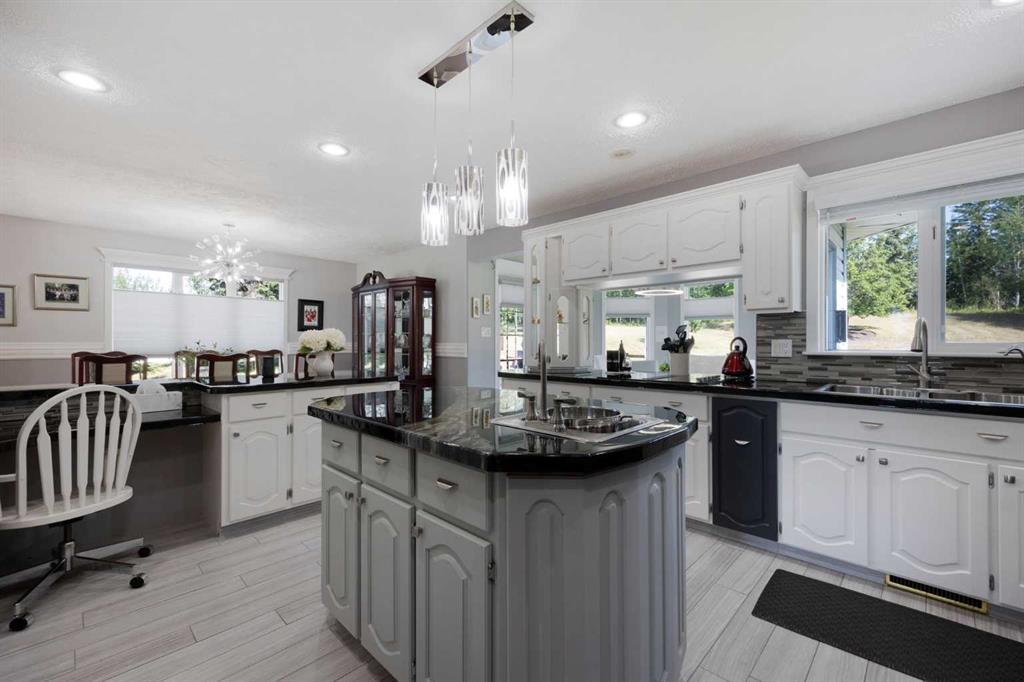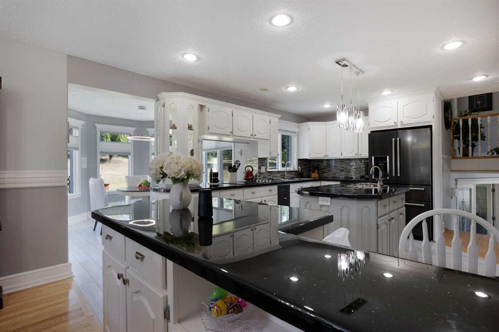 Custom build home on 1.81 acres immaculately kept. Acreage Living at its best. Welcome to 160 Community Lane Pride of ownership shows throughout this custom built home. Entering into the Spacious foyer, featuring custom built-in cabinetry W/ storage. tile flooring. The Formal living room boasts gleaming hardwood floors, floor to ceiling windows, built-in bookshelf & storage. Baseboards & Trim throughout Are Oak. Recently updated beautiful Kitchen with an abundance of custom solid Oak cabinetry, centre island w/ more cabinets & a prep sink, kitchen boasts stylish finishes, newer appliances, built-in wall oven, countertop cooktop facing the back yard the kitchen sink also looks out to the beautiful backyard. kitchen features: under cabinet lighting, Spice drawer, utility drawer, Lazy Susan, a Pullout Chef pantry, broom closet & file drawer beside the built in desk so many features , all cabinets are solid oak. large formal dining area open to the Kitchen & the beautiful sunny Breakfast nook featuring heated tile flooring & big beautiful windows, with access to back deck. The Upper level has 3 generous bedrooms, all with hardwood floors. The primary suite has access to a beautiful 4 pcs. bathroom w/ soaker tub & stand-up shower. the Lower level, you will find a cozy family room with cork flooring, built in cabinets, & a cozy Wood burning fireplace. adjacent to that there’s a exercise/mudroom with access to a 3-pcs bathroom & access to the double attached heated garage w/ newer epoxy flooring, new furnace and Newer garage doors, main door and garage has recently been painted.