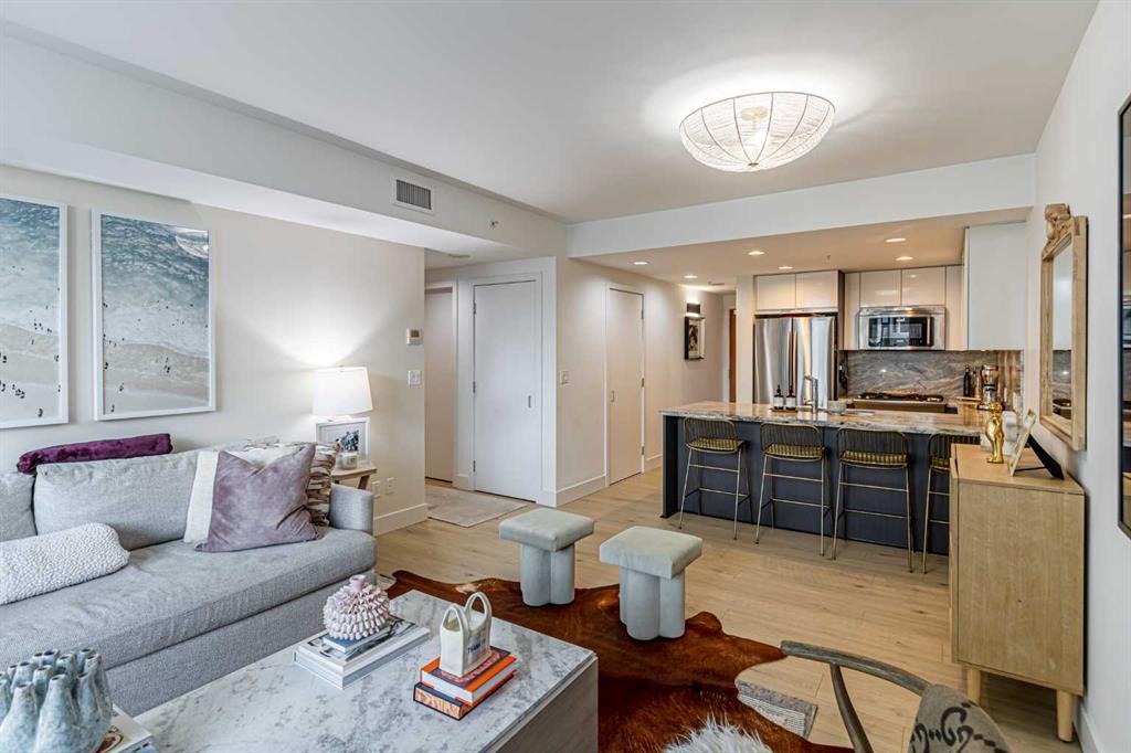 Additional highlights include in-suite laundry, a den for your home office or extra storage, and parking for two vehicles in a tandem stall—eliminating the hassle of street parking and car shuffling. Residents enjoy exceptional building amenities, including concierge services, two fitness rooms, a steam room, sauna, and underground visitor parking. Located just steps away from transit, the C-train, river pathways, the zoo, and Prince\'s Island Park, this condo offers an unbeatable lifestyle in a thriving community. Don’t miss this wonderful opportunity to call this immaculate space home!