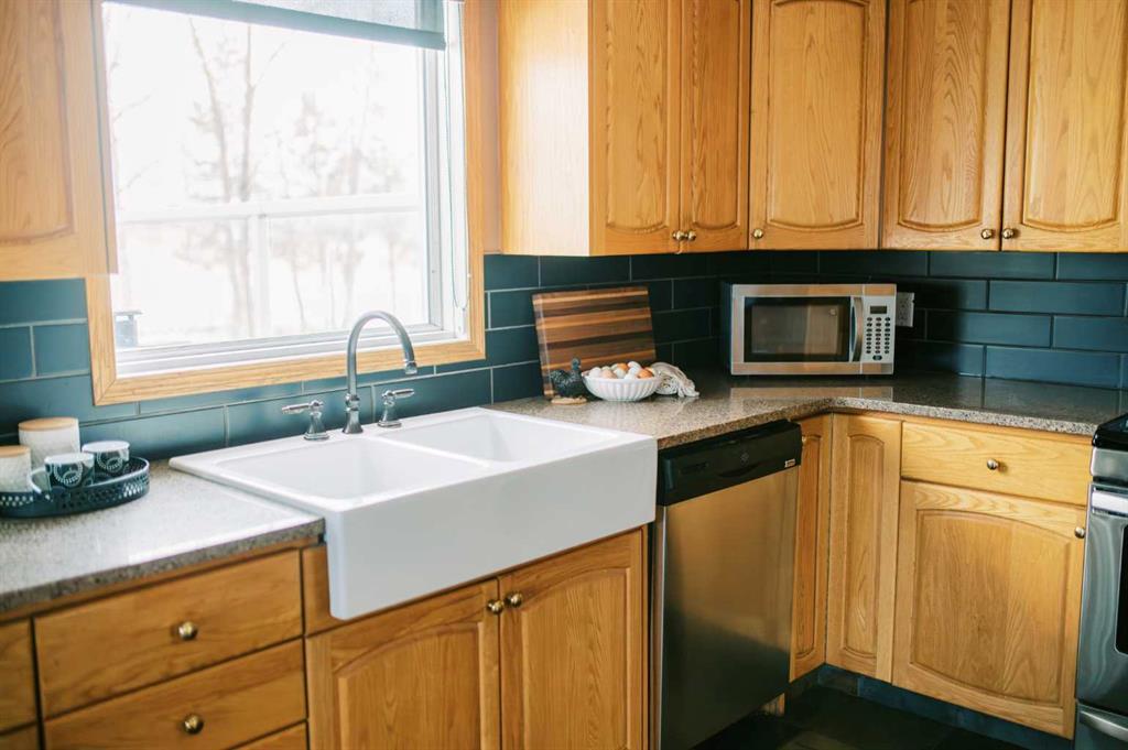 The BI-LEVEL HOME has been exceptionally well cared for and is both comfortable and efficient. The main level offers THREE BEDROOMS and TWO FULL BATHROOMS, including a primary bedroom with WALK-IN CLOSET and FULL ENSUITE. Updates include HARDWOOD FLOORING on the main level (approximately five years old), NEWER QUARTZ COUNTERTOPS, STAINLESS STEEL APPLIANCES, a GAS STOVE, a NEWER FARMHOUSE SINK, and a CORNER PANTRY. Large windows bring in an abundance of natural light.