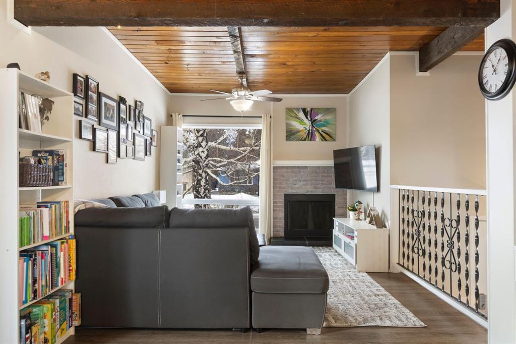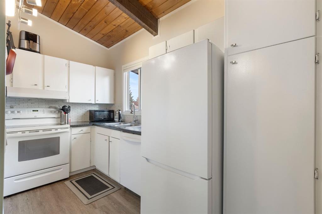 Welcome to this well cared for corner unit 2 bedroom, 1 bathroom home in Rundle, offering a smart layout, added privacy, and great value for both first time buyers and investors. The main level features a comfortable living room with exposed wood beams and a wood burning fireplace offered as is, along with fresh paint and updated vinyl plank flooring. The white kitchen is bright and functional, and the renovated four piece bathroom adds a clean, modern touch to the space.
