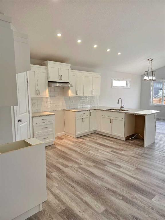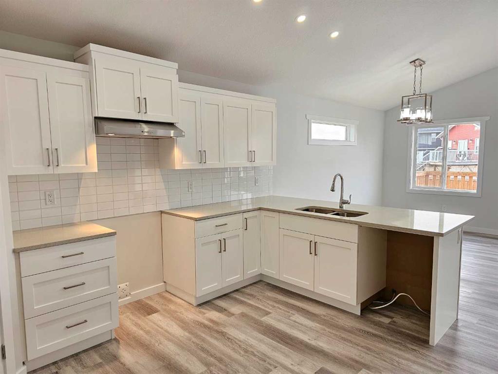 Welcome to this incredible modified bi-level home in Wembley that is currently under construction ! Boasting an attached garage , this property features a spacious backyard. The lot is wide enough that it can have an RV parking pad in the front. As you step inside, you\'ll be greeted by a lovely entryway complete with ample storage space. The main level offers a fantastic kitchen area featuring stunning cabinetrys, a generous dining area, and a comfortable family room. The upper level is home to a generously sized master bedroom with a walk-in closet and an ensuite. The basement level is open and waiting for your creative touch to develop into additional living space. Located just a short 12-minute drive west of Grande Prairie, this home is situated in a fantastic area, offering numerous advantages. Come see for yourself what this remarkable property has to offer! Please note inside pictures are sample photos of the same plan.