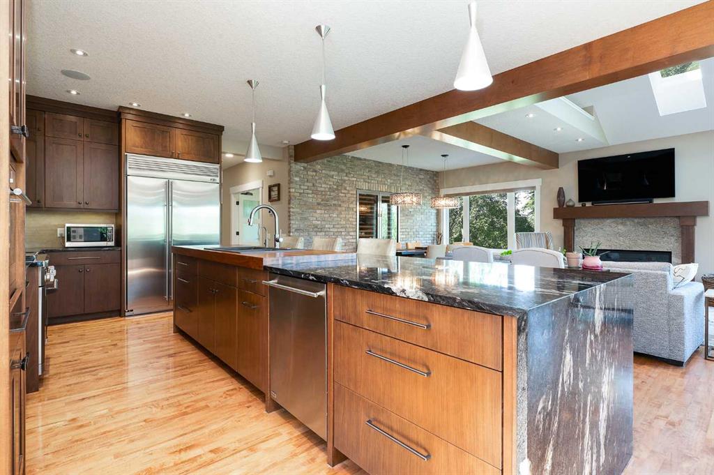 OPEN HOUSE SATURDAY, FEBRUARY 14TH AT 1:00-4:00 PM!! Unprecedented location siding & backing onto picturesque Confederation Park! This gracious 3+1 bedroom home with FULLY DEVELOPED WALK-OUT BASEMENT & over 3800 sq ft of developed living space, underwent a “to the studs” renovation in 2015 & exudes elegance. The open & airy main level is adorned with hardwood floors, showcasing a living room with beamed vaulted ceiling with skylights & feature fireplace. The spacious dining area with brick feature wall & built-in Sub-Zero wine fridge has ample space to host friends & family. The kitchen is discerningly finished with granite counter tops, island/eating bar, plenty of storage space & top of the line stainless steel appliances. A bright private office with built-ins is tucked away just off the foyer & a 2 piece powder room & convenient mudroom complete the main level. The second level with hardwood floors hosts 3 generously sized bedrooms, a 4 piece bath & laundry room equipped with sink & storage. The primary retreat boasts a walk-in closet with in-floor heat & private 4 piece ensuite also with heated floors, dual sinks & oversized shower. The walk-out basement with in-floor heat has access to the patio & is the perfect space for game or movie night, featuring a huge family room with home theatre system plus a games/recreation area complete with bar area including a Kegerator & wine fridge. A fourth bedroom & 4 piece bath with relaxing steam shower are the finishing touches to the basement. Other notable features include dual central air conditioning units, dual high efficiency furnaces (2022), 2 hot water heaters, wired for sound/video, Hunter Douglas blinds throughout & 2 open to below features from second to main level. Outside, enjoy the tranquil Duradeck covered main floor deck with beautiful views of the park & lower patio with paving stones surrounded by Kayu Batu fencing. Parking is a breeze with a double attached garage with heated floor. The premier location can’t be beat, steps from the park with access to walking/biking paths, a ball diamond, tennis courts, golf course & also close to schools, shopping & public transit.