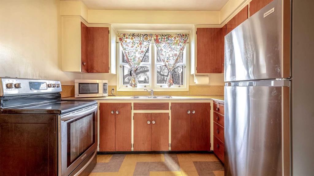 Terrific value in this charming, 3 bedroom bungalow with single detached garage in desirable Winston Heights! Perfect location, backing onto a park as well as fronting green space! The main floor offers a cheerful south facing living room/dining room, kitchen with a view to the park, 3 bedrooms and updated 3 piece bath. Original hardwood floors add character and warmth throughout much of the main level. The partly finished lower level includes a generous recreation room, flex room, 3 piece bath, laundry and loads of storage space. Recent updates include new shingles (2023), furnace (2023) hot water tank (2022) and new refrigerator (2025). This great property offers a fenced backyard looking onto the park, large patio and single detached garage. Close to schools, shopping and transit. A special place to call home!