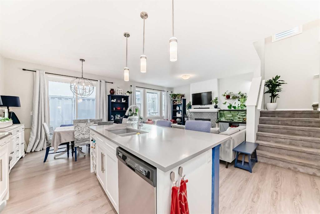 Immaculate and truly move in ready, this beautifully maintained home offers a desirable south facing backyard and is perfectly situated in the sought after community of Sunset Ridge. With 2,176 sq. ft. of thoughtfully designed living space, this modern 5 bedroom, 3.5 bathroom residence has clearly been lovingly cared for and enjoyed as a long term family home. From the moment you enter, you will appreciate the pride of ownership and attention to detail throughout. The main level features 9 foot ceilings and stylish luxury vinyl plank flooring, creating a bright and welcoming atmosphere. A spacious foyer sets the tone and leads to a dedicated home office, ideal for working from home, studying, or managing a busy household. The open concept layout is filled with natural light from expansive windows and flows seamlessly into the elegant living room, anchored by a cozy natural gas fireplace that makes this space perfect for everyday living and family gatherings. At the heart of the home is the sleek, gourmet kitchen, designed with both function and style in mind. It features stainless steel appliances, a corner pantry, grey quartz countertops, a large center island for casual meals or homework time, and modern full height white cabinetry offering ample storage. The adjacent dining area opens onto the south facing deck and patio, providing a private outdoor extension of the living space that is ideal for entertaining, playtime, or simply unwinding. The covered sunroom adds a versatile, sheltered area that can be enjoyed throughout the year. Upstairs, you will find four generously sized bedrooms, a full 4 piece bathroom, and a centrally located bonus or media room that works perfectly as a family lounge, playroom, or movie space. The primary retreat is a true escape, complete with a spacious walk in closet and a luxurious 5 piece ensuite featuring a soaker tub and separate stand up shower. The fully finished lower level, completed by the developer, adds exceptional flexibility with a large and bright great or media room, a convenient kitchenette, a fifth bedroom, and a 5 piece bathroom, making it ideal for guests, teens, or extended family. Every level of this home reflects thoughtful planning and long term enjoyment. Located close to schools, parks, playgrounds, and all essential amenities, this is a home where families can truly settle in and grow. Well cared for, beautifully presented, and ready for its next chapter, this exceptional property is a must see. Book your private showing today, you will not be disappointed.