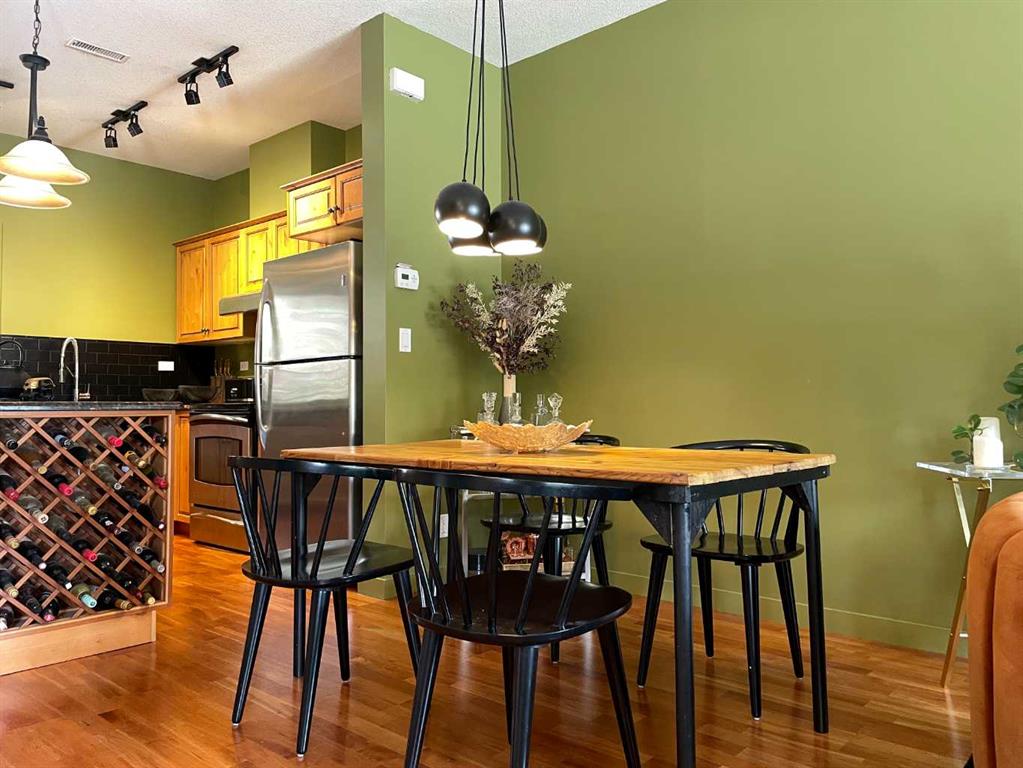 Thoughtfully designed 3-bedroom, 2.5-bath townhome with mountain views just minutes from downtown. The open-concept main floor features hardwood flooring throughout, granite countertops, and a carefully designed kitchen with stainless steel appliances, rich wood cabinetry, and a built-in wine holder, flowing seamlessly into a cozy, inviting living room that offers a warm and comfortable space to relax after a day in the mountains. A convenient half bath and stacked laundry complete this level. Upstairs, the spacious primary bedroom includes a beautifully finished ensuite, along with 2 additional bedrooms and a full bathroom, with stunning east and west facing mountain views from the upper level. The home also offers in-unit storage plus additional secure storage in a separate building, ideal for bikes, skis, and all your mountain gear. The Bow River trail system is just one block away, with a playground steps from the front door, and schools, downtown shopping, and Main Street all within a short walk, making this an exceptional opportunity to enjoy mountain living with everyday convenience.
