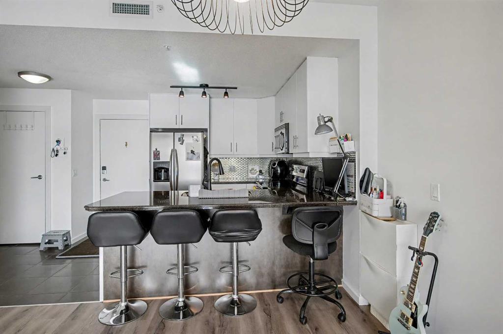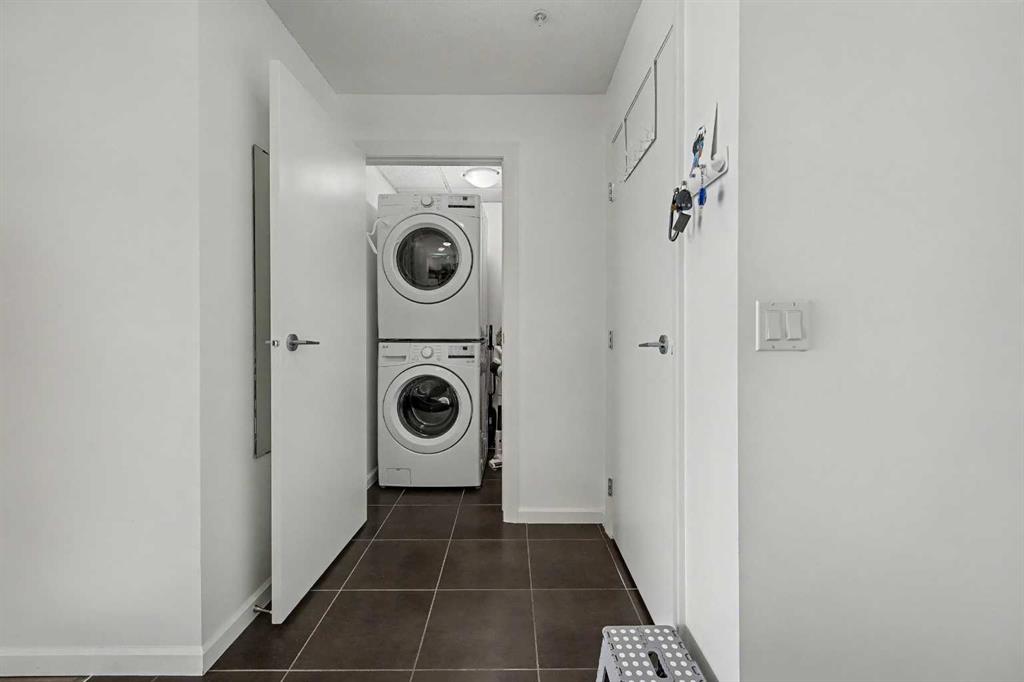 Urban Living at Its Best! Welcome to Vetro, where modern style meets unbeatable convenience. The open-concept layout features a modern kitchen with granite countertops, stainless steel appliances, a breakfast bar, and a striking tile backsplash. The bright living and dining space flows seamlessly, providing plenty of room to relax or entertain. The spacious bedroom includes a walk-through closet that leads into an ensuite bath, creating a private retreat. Note: Replaced washer/dryer (2023), flooring (2022), and repainted cabinets (2022). This unit comes with a titled underground stall and an assigned storage locker. The Vetro building is designed for elevated living, featuring a concierge service and night time security for ultimate peace of mind. Wellness enthusiasts will appreciate the expansive two-level fitness center, complete with a hot tub, steam showers, and an inviting games and social lounge with a pool table and cozy fireplace. Host movie nights in the private theatre room or relax in the outdoor courtyard. Convenience is at your doorstep with Shoppers Drug Mart and Canada Post located at the base of the building, and Sunterra Market and the BMO Centre just a short walk away. The Stampede Grounds, New Scotia Place Event Centre, Saddledome, LRT transit, and the vibrant shops and restaurants of 17th Avenue are all within easy reach. Lindsay Park and the MNP Community & Sports Centre are nearby, supporting an active, connected lifestyle. Whether you\'re a young professional, savvy investor, empty nester, or first-time buyer seeking to own instead of rent, this condo delivers an exceptional blend of luxury, convenience, and an unbeatable location.