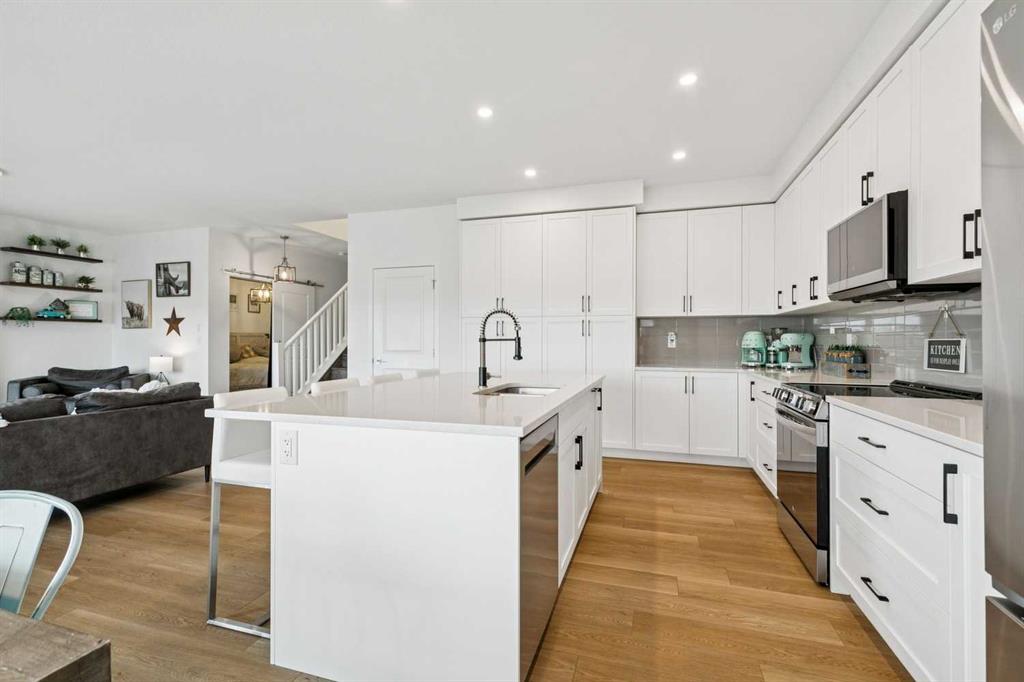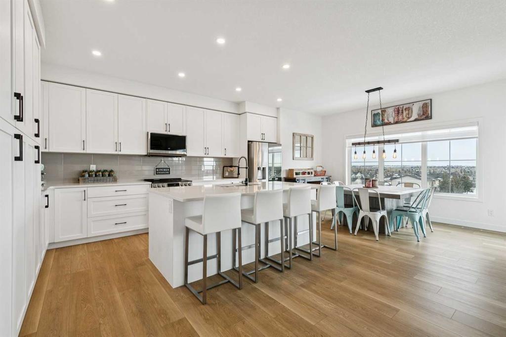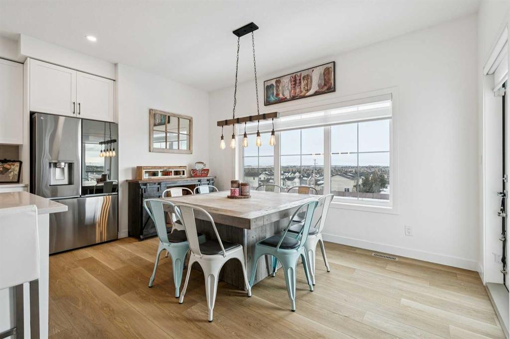 This new but better-than-new home is located in the award-winning community of Wildflower by Minto Communities, voted Canada’s Best New Community in 2025. Offering over 2,400 sq ft of extensively upgraded living space and a TRIPLE CAR GARAGE, you may have just found your new home. The rare three-car tandem garage provides exceptional space for vehicles, storage, or hobbies and includes a dedicated ELECTRIC VEHICLE CHARGER—a highly sought-after upgrade that future-proofs the home for modern living. Thoughtfully designed throughout, this residence features an ideal layout with FOUR OVERSIZED BEDROOMS, a large upper bonus room, and an UNFINISHED WALK OUT BASEMENT ready for future development. Curb appeal is immediate with a durable HARDIE BOARD EXTERIOR, PERMANENT OUTDOOR SOFFIT LIGHTING, and an oversized concrete front porch—and this is just the beginning. Inside, luxury vinyl plank flooring flows throughout both the main and upper levels, creating a cohesive and contemporary feel. The expansive open-concept main floor is anchored by a beautifully designed kitchen with abundant cabinetry, generous counter space, and UPGRADED APPLIANCES well beyond builder standard. The dining area and bright living room are perfectly positioned to capture the home’s ELEVATED EAST-FACING VIEWS, while RUSTIC BARN DOORS throughout the main level add warmth and character. A versatile MAIN FLOOR DEN is ideal for a home office or flex space, and a thoughtfully designed mudroom adds everyday convenience. Upstairs, the layout continues to impress. The primary suite is privately tucked away down its own hallway, creating a peaceful retreat complete with a massive walk-in closet and a beautifully finished ensuite offering dual vanities and a walk-in shower. All three additional bedrooms are generously sized, and the upper family room provides an inviting gathering space for movie nights or playtime. The upper main bathroom is thoughtfully designed with dual sinks and a separate enclosed tub/shower area, making busy mornings seamless for families. Upstairs laundry adds another layer of function to this well-planned level. The outdoor living space is equally impressive, featuring a Duradek-finished back deck with stunning east-facing views over the city, perfect for morning coffee or evening relaxation. The fenced and landscaped backyard offers both privacy and usability, while the walk-out basement presents endless opportunities for future customization. Additional upgrades include central air conditioning, completing this exceptional home. Located in Wildflower, residents enjoy access to the community’s signature Hillside Hub, featuring playgrounds, walking paths, and scenic lookout points—designed to foster connection, wellness, and an active lifestyle. This is a rare opportunity to own a truly turnkey home with premium upgrades in one of Airdrie’s most desirable communities.