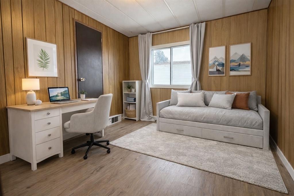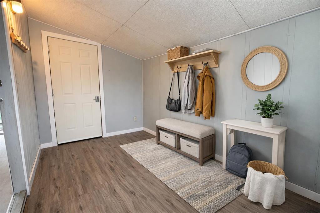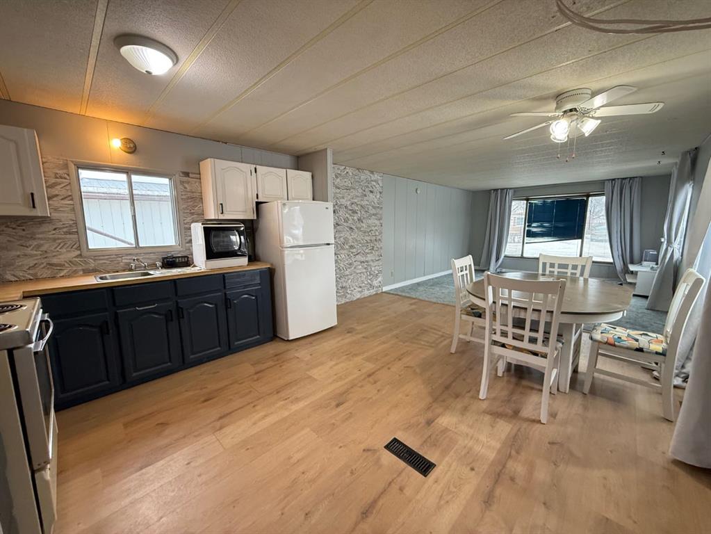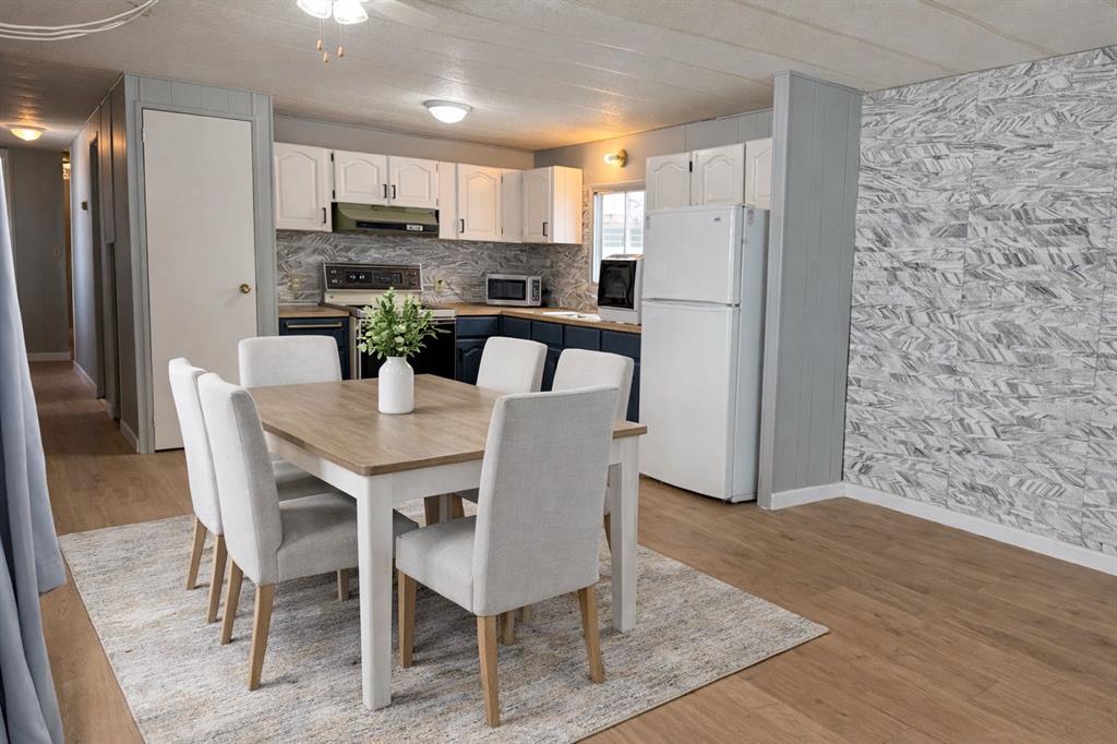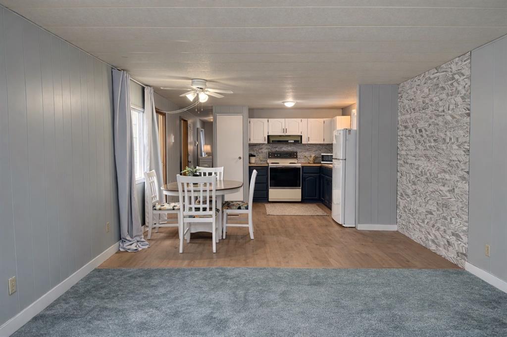 Step inside through the large front porch/entry, providing plenty of room for coats, boots, and everyday storage — a practical feature you’ll appreciate year-round. The home opens into a spacious living area filled with natural light and flows seamlessly into the dining space and kitchen, creating an inviting layout for both relaxing and entertaining. The kitchen offers ample cabinetry and workspace, while the oversized back entry with its own sink adds extra convenience for busy households, gardening, or cleanup. You’ll find two comfortable bedrooms and a full bathroom with double vanity, giving extra counter space and functionality for families or guests. Outside, enjoy your own private retreat with a vinyl-fenced yard featuring two gates for easy access, plus raised garden beds and an established raspberry patch — perfect for those who love to grow their own produce or spend time outdoors. Affordable, low-maintenance, and move-in ready, this property is ideal for first-time buyers, downsizers, or anyone looking for small-town living with great outdoor space. - Some photos have been virtually staged using AI to illustrate potential room layout and furnishing options.