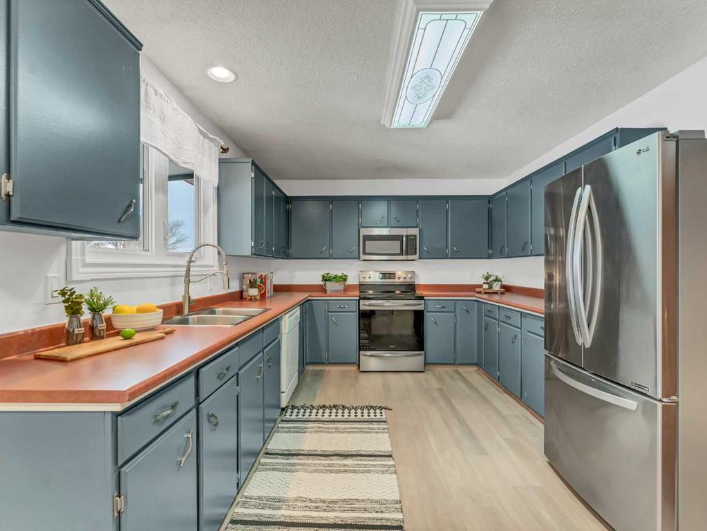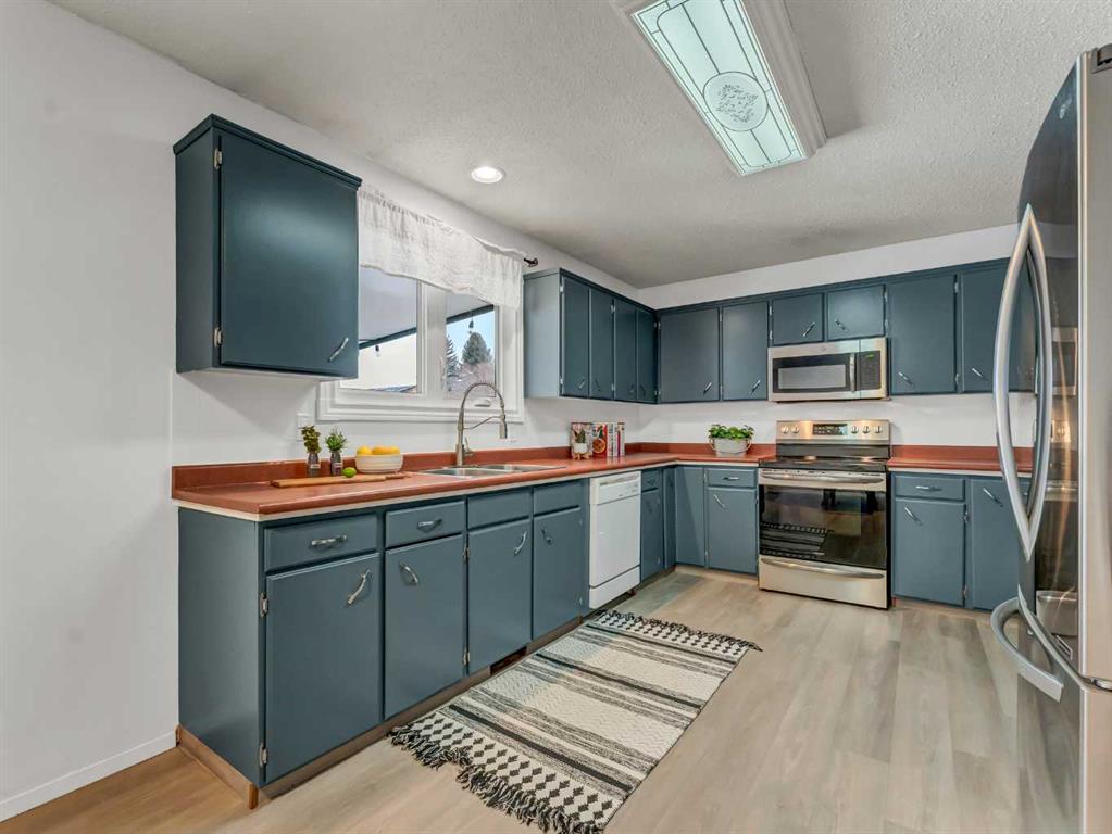 Location, location, location! Tucked away on a quiet crescent and directly across from a large park and playground, this inviting 4-bedroom, 2-bathroom home offers the perfect setting for a growing family. With Dr. Ken Sauer Elementary School just a short walk away and a huge backyard to enjoy, this is a home where kids can play and memories are made. The main floor features durable vinyl flooring throughout and a spacious front living room filled with natural light and peaceful views of the park across the street. The large eat-in kitchen offers plenty of space for family meals and gatherings, with direct access to the back deck and expansive yard—ideal for outdoor entertaining or everyday play. Two comfortable bedrooms and an updated 4-piece bathroom complete the main level. Downstairs, the fully developed basement adds even more living space with a large family room centered around a cozy wood-burning fireplace, two additional bedrooms, a 3-piece bathroom, laundry area, and convenient access to the backyard. Outside, you’ll appreciate the single detached garage and the oversized, fully enclosed yard that offers ample room to add an additional large garage or create your dream outdoor space. A fantastic opportunity in a sought-after location—close to schools, parks, and perfect for young families looking to settle into a quiet, community-focused neighbourhood. Recent updates to the home include: New Doors & Windows (September 2025), New Underground Sprinkler System (Summer 2025), New A/C and Furnace (2025), New Vinyl Fence (Lifetime Guarantee), New Carpet in Upstairs Bedrooms, Freshly Painted, New Pony Wall Feature in Entrance, Kitchen Cabinets Painted & Updated, & New Sod in the Backyard.