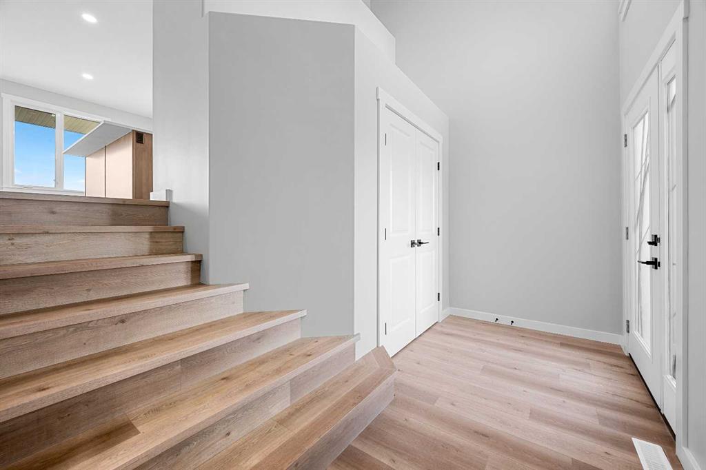 Immediate possession can be accommodated in this immaculate 1404 square foot modified bi-level. You will love the natural light that floods the 18 foot high entryway ceiling.. a feature specific to this home which adds spatial appeal the moment you walk through the front door. Located within a quiet residential area in Lakeside of College park, you will appreciate the rear yard greenspace separating you from future residential developments and providing back yard amenity not easily achieved on comparable homes in this price range. Add to this additional features which we are sure you will appreciate and enjoy: natural gas fireplace in the main floor Livingroom, open concept living area, rear yard facing family room, Upgraded cabinets with quartz counter tops and tile backsplash, 9\' ceilings on the main floor, upgraded 8\' overhead garage door, triple glazed windows with solar guard, Heat Recovery Ventilation system, covered front entry with board and batten support post, rock accents on garage corners, 12\' foot ceilings on second bedroom on the main floor, covered area on future rear deck, 24\' by 24\' attached garage, garage sump, recessed lighting throughout home, main floor laundry- If you have not seen this home you owe it to your self to see it and everything that it has to offer- exceptional quality by a respected long term builder in the community.