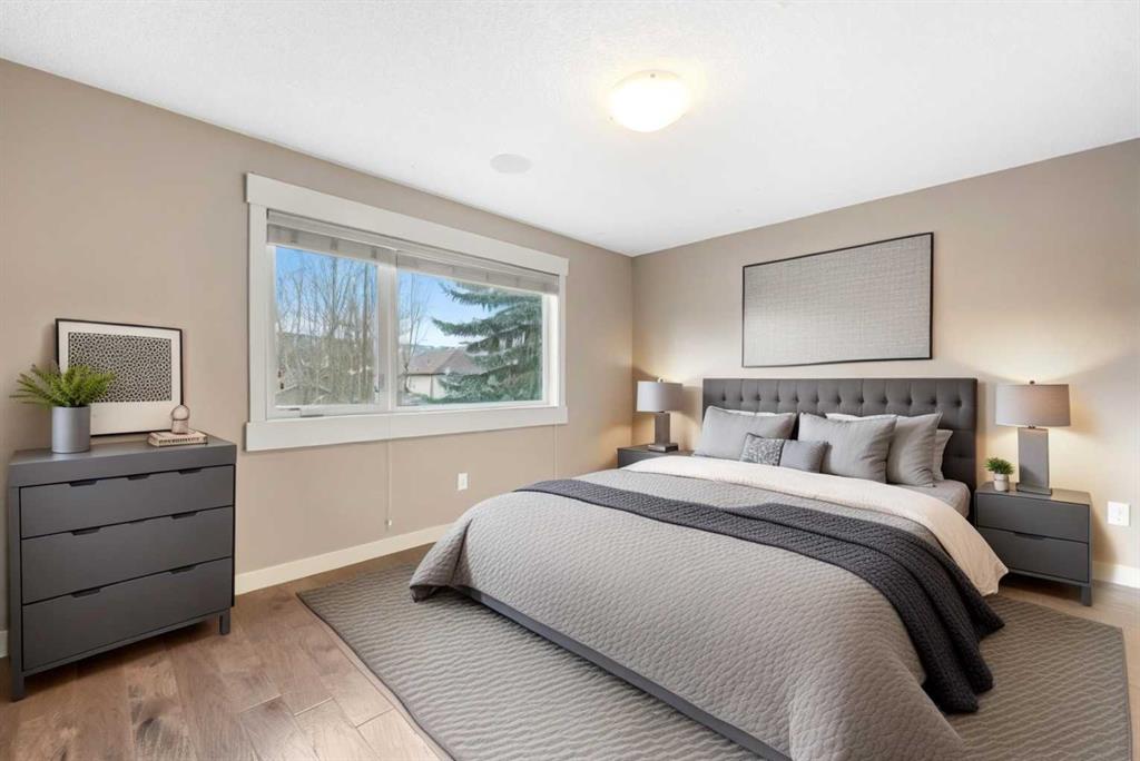 In real estate, location is everything — and Montgomery is one of those rare communities that truly delivers. Steps from the Bow River pathways and surrounded by beloved local cafés, shops, and green space, this beautifully appointed front-unit townhouse in a modern four-plex offers elevated inner-city living without compromise. With south-facing exposure and a sunny front patio, this well-maintained home is filled with natural light and offers nearly 2,200 sq ft of total developed living space across four finished levels. Every floor has been thoughtfully designed to balance style, comfort, and everyday function. The main level impresses with 9-foot ceilings and a bright open-concept layout that’s ideal for entertaining. The gourmet kitchen anchors the space with quartz countertops, sleek cabinetry, stainless steel appliances, and a central island perfect for gathering. Rich hardwood flooring carries into the inviting living room, where a gas fireplace adds warmth and character. A tucked-away 2-piece powder room completes this floor. On the second level, the primary bedroom serves as a relaxing retreat with a walk-in closet and private 4-piece ensuite. A second spacious bedroom, another full 4-piece bathroom, and convenient stackable laundry provide excellent functionality for families, guests, or roommates.