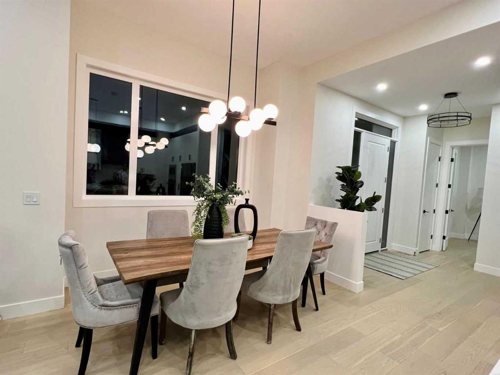 This elegant modern 2-storey home features impressive 10’ and 11’ ceilings, expansive windows, and abundant natural light throughout. The main floor welcomes you with a proper foyer, custom staircase, engineered hardwood flooring, and stylish lighting. The chef-inspired kitchen offers ample cabinetry, quartz countertops, built-in double oven and microwave, quality appliances, and a functional layout perfect for entertaining. A bright home office or extra bedroom, elegant dining area, cozy living room with fireplace, and a large mudroom with bench and closet complete the main level. Modern blinds are already installed, and the spacious 12’ x 18’ deck is ideal for relaxing and summer BBQs.