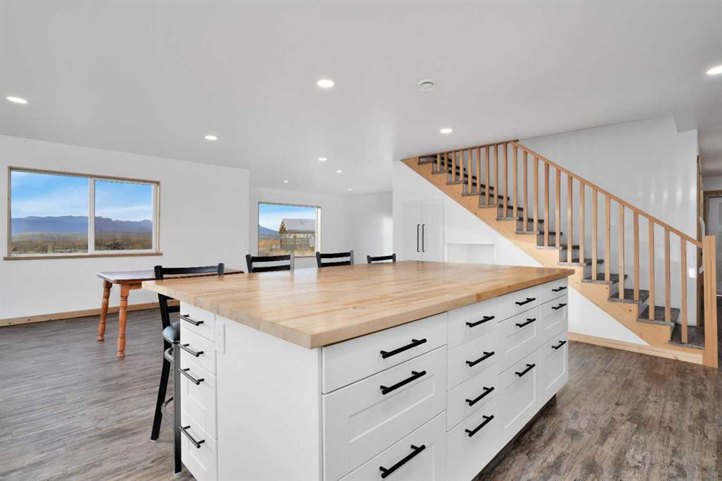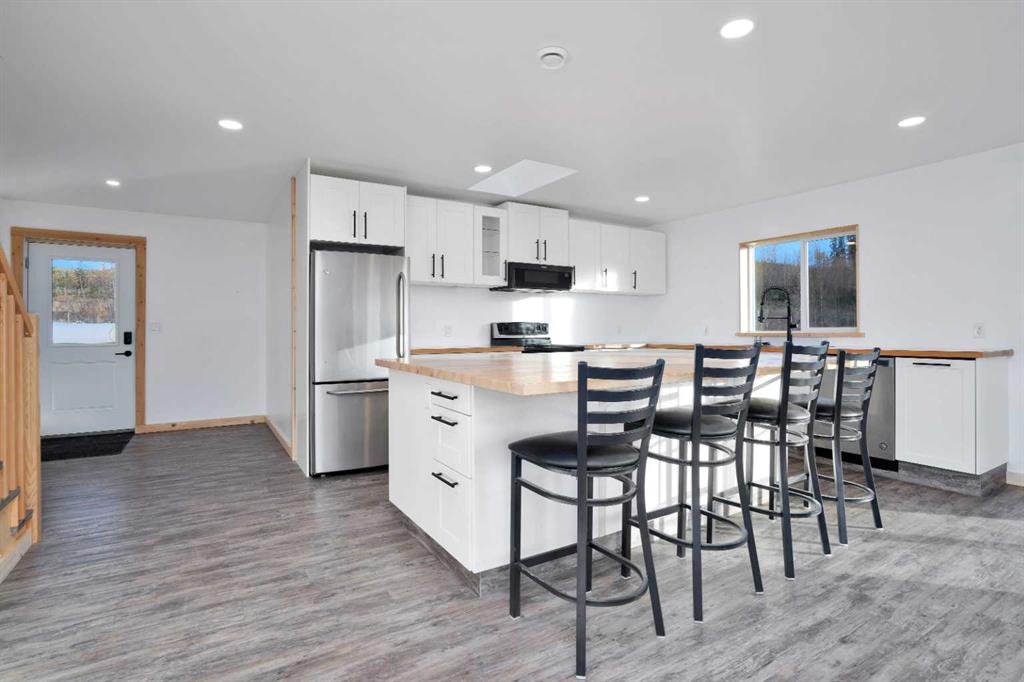 Welcome to the Nordegg Industrial Subdivision! 4.27 acres this property is ideally setup to live and operate a business from. There is space for your family to live full-time in addition there is a 5-bedroom, 2 bathroom + Kitchen staff bunkie and 2 standalone seasonal cabins (Cabin 1 is a 1 bedroom, 1 bathroom, Cabin 2 – 2-bedroom, 1 bathroom). The parcel is perimeter fenced with plenty of room for yard storage and equipment to maneuver around. The primary residence is designed in a modern farmhouse style, it is clean, simple and welcoming with classic rustic farmhouse elements. This home allows for an open concept living, dining and kitchen experience, the house is positioned to capture the breathtaking panoramic mountain views, some of the best views in the area! On the main floor you will find an expansive kitchen, dining room, living room, a 3-piece bathroom, access to the garage and a bonus area that is rough-ed in for a 2nd kitchen or alternatively another bathroom this room is accessible from the outside. (the intent was to develop a small commercial kitchen in this area). The upper level has 2 defined bedrooms a beautiful 5-piece bathroom, spacious laundry room and walk-in closet, a sitting area and a flex room that could easily be a 3rd bedroom. The property is serviced with 2 septic systems the main house has a tank and field system and the bunkie has a holding tank. The water system for the main house is a rain collection system (not potable but could modified) this system is connect to the 2 cabins. The bunkie has a potable water tank cistern. This is the prime opportunity to invest in Nordegg’s future and be a part of an up-and-coming mountain community that has so many untapped resources.