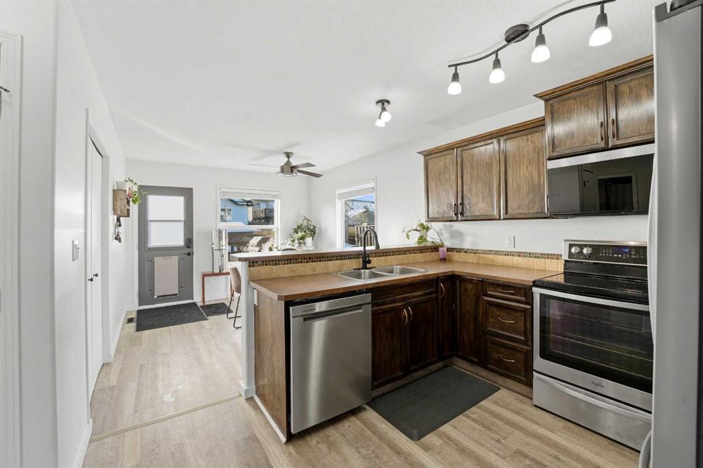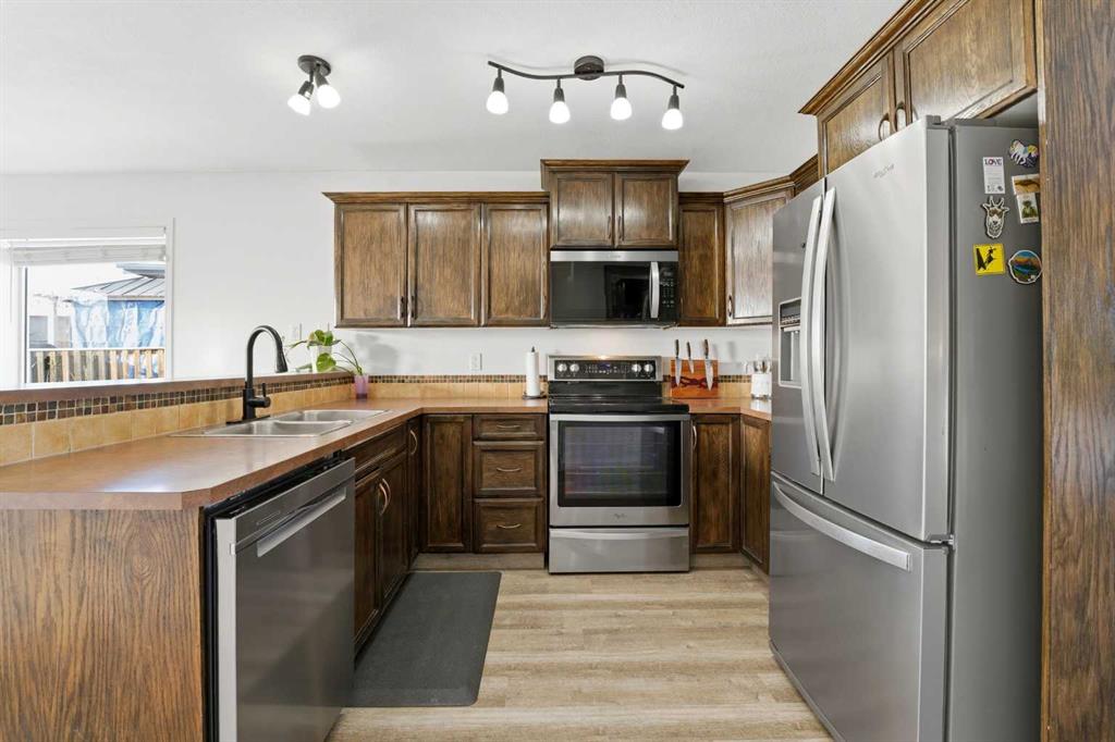 Welcome to this well-cared-for bilevel home located in a prominent, family oriented subdivision in Rocky Mountain House. Pride of ownership is evident throughout this 4 bedroom /2 bathroom home which is filled with natural light thanks to the large main floor windows. Recent updates include new vinyl plank flooring , baseboards and paint throughout all levels and rooms, along with newer high-end Whirlpool kitchen appliances. The shingles were replaced approximately 5 years ago, hot water tank in 2018 and the furnace had new thermostat, blower motor, and circuit board installed. The large fully fenced back yard offers plenty of space and features a built in dog house - perfect for your furry companions. There is plenty of room to build your dream garage in the back as there is parking for 3 + vehicles. Located close to parks, playgrounds, school bus service and all the amenities families need this move in ready home is an excellent opportunity for first time buyers looking to put down root in a welcoming community.