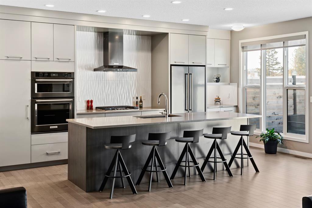 OPEN HOUSE – Sat February 7 (1-3pm) This Cedarglen home, just 7 year young, presents a sophisticated contemporary design, clean and crisp throughout. Featuring a bright, open plan, 9 foot ceilings and 8 foot doors across all three levels, wide plank hardwoods, quartz countertops and an urban vibe throughout – SHARP! This two storey home, just seven years young .... SHOWS LIKE NEW!, offering 3218 sq ft of living space over three levels, 3+1 beds PLUS a Bonus Room up, 3.5 baths and a fully developed lower level! Your family will love this space. This is a premier address, West Grove estates, a lightly travelled crescent in highly desirable West Springs.... great schools, shopping and services within walking distance of your new home! On arrival you will be struck by the exposed aggregate drive and walkway, and acrylic stucco – NICE! Entering you will love the 9’ ceilings (on all 3 levels!), wide plank hardwoods and the BRIGHT, OPEN PLAN. The main floor centers around the Great Room in back, a broad open space with a large family room, generous dining space and a striking kitchen. The kitchen features an abundance of counter space, a center island breakfast bar, S/S appliances including a gas cooktop and wall oven, a SPACE for ENTERTAINING… leading directly to your rear composite deck which spans the entire back of the house – NICE! Leading upstairs you will find a large Bonus Room and three beds. The primary retreat is generous in size and features a 5pc en suite complete with quartz countertops, a soaker tub, free-standing seamless glass shower and a large walk-in closet with built-ins. The two additional beds up are also generous in size and share a full 5 pc bath. The lower level has been professionally developed and offers a broad open rec room which will easily accommodate a media space and/or fitness space as you choose, plus a guest bedroom and full bath.