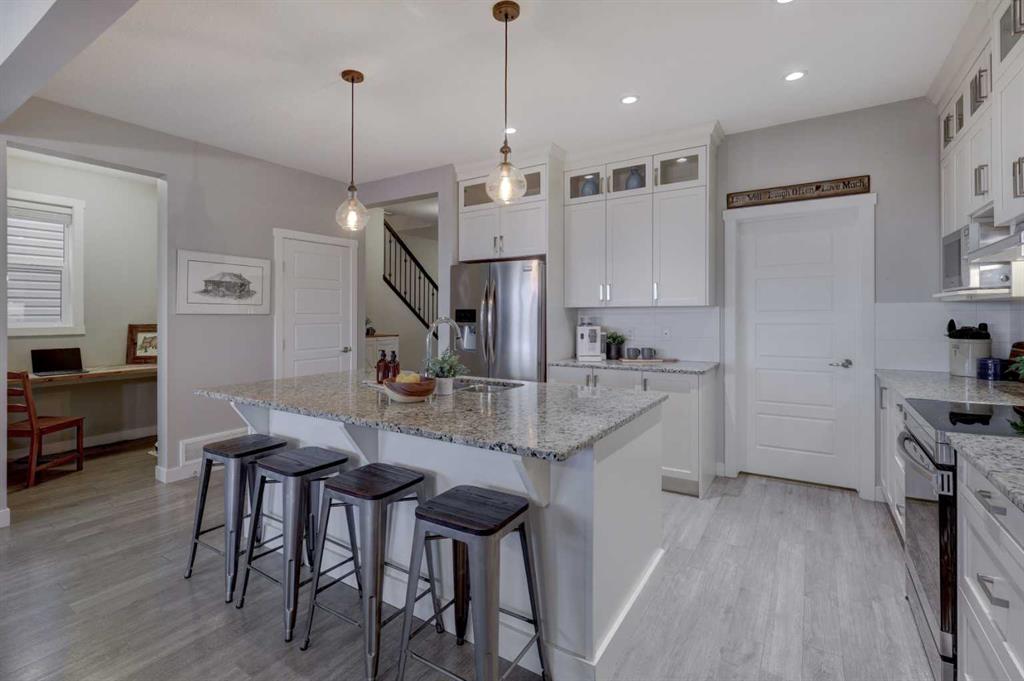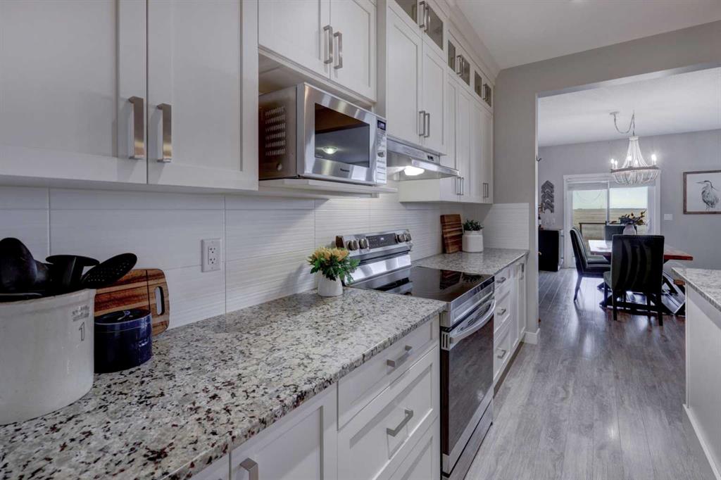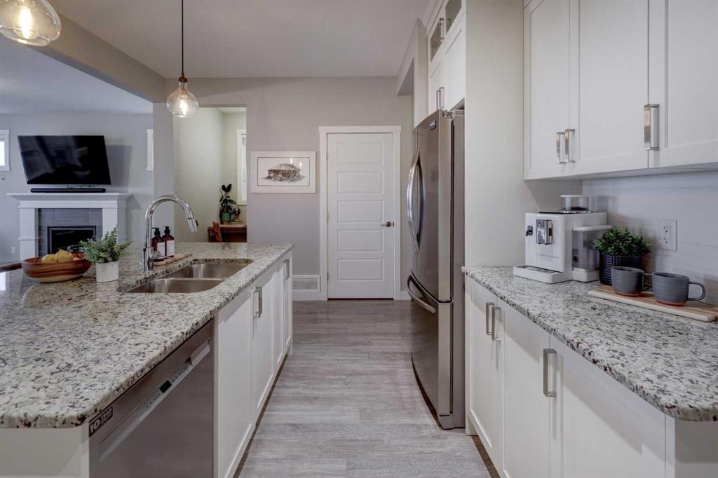 Stunning 4-Bedroom home with ALL the bells and whistles, backing onto a serene environmental reserve and creek, on a quiet street in Williamstown. From the moment you arrive, you’ll appreciate the low-maintenance front driveway and gravel yard accented with mature tree, plus the convenience of a double attached oversized garage. Step inside to an open foyer featuring durable laminate flooring, 9\' ceilings, and an organized front closet with built-in storage for coats and shoes. The heart of the home is the grand and elegant Kitchen, showcasing floor-to-ceiling white cabinetry with glass upper display cabinets, granite countertops, tiled backsplash, SS appliances, and a large eat-up island with sink—perfect for gathering and entertaining. A highly desirable double walk-through Pantry with built-in shelving connects seamlessly to the Mudroom, which is complete with built-in storage, a bench, and hooks. The main floor also features recessed lighting, and expansive windows that flood the space with natural light. The spacious Dining area easily accommodates a large table, while the inviting Living Room is anchored by a cozy gas fireplace with mantel. Step outside from the Dining Room onto the large back deck with glass railings, offering unobstructed views of the north-facing creek and nature reserve with NO neighbors behind for total privacy. Completing the main level is a charming Office Nook with its own window and a 2-pc bathroom with a pedestal sink. Up the elegant spindled stairs, you’ll find a massive Bonus Room with vaulted ceilings, perfect for movie nights or a kids’ retreat. The inviting Primary bedroom features a tray ceiling, an oversized window with a bench seat, breathtaking views and a massive walk-in closet! The luxurious 5-pc ensuite offers a standalone soaker tub beneath a window, dual vanities with granite countertops, and an oversized tiled walk-in shower. THREE additional bedrooms—each with their own closet—share an easily accessible 5-pc bathroom with dual vanities, granite counters, and ample storage. Finishing off the upper level is the convenient Laundry Room with tiled floors, shelving, and a linen closet. Downstairs hosts a partially finished basement, ready for your finishing touches. It already features Family room/Gym area, Rec Room space, and an abundance of storage. You can stay cool with the central air conditioning or enjoy the fabulous outdoor space this home offers. The fully fenced backyard comes with a stamped concrete pad, under-deck storage, and low-maintenance landscaping—the perfect place to soak in sunshine and serene views. Even the location is 10/10—ideally located close to schools, parks, walking paths, shopping, and amenities, with easy access for commuting. This home offers the perfect blend of space, style, and setting in one of Airdrie’s most family-friendly communities. Book your private viewing TODAY!