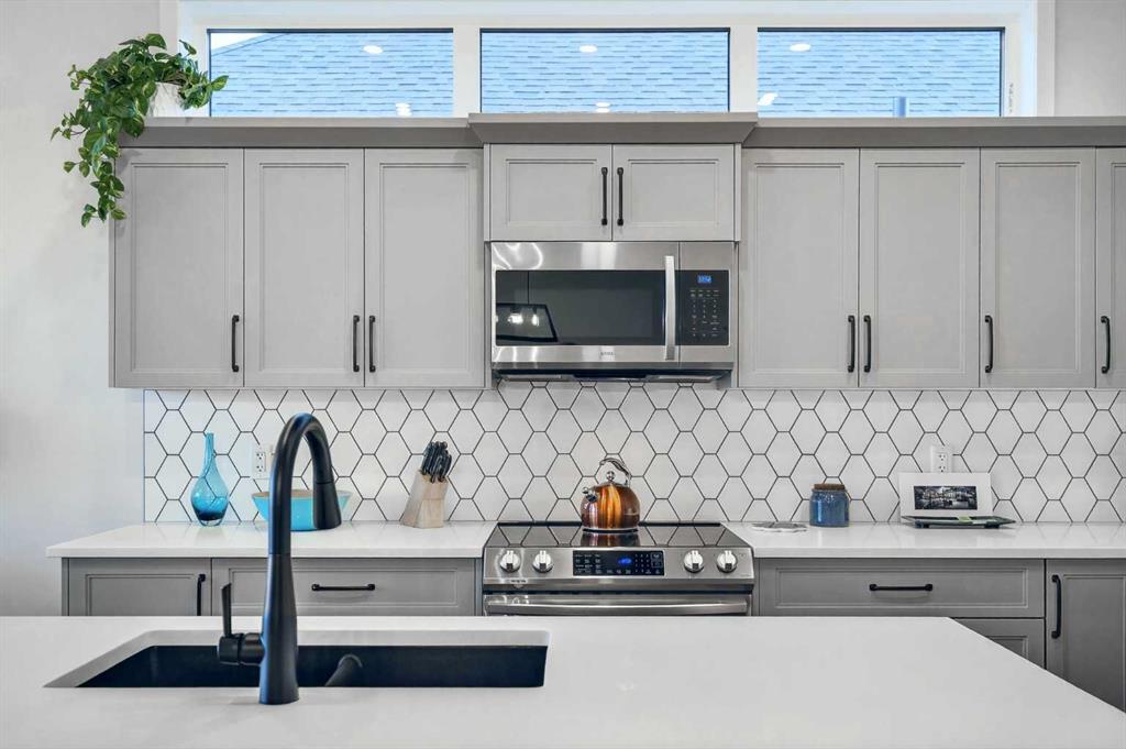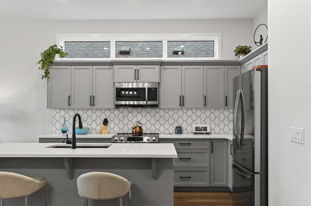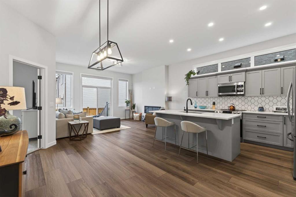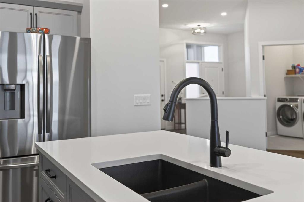 Welcome to 125 Amery Crescent - an immaculate modern bungalow in the sought-after Vista Crossing neighbourhood of Crossfield with quick access to Airdrie and Calgary. This beautifully designed home offers a comfortable and thoughtful design, perfect for both everyday living and entertaining. Showing like-new throughout, this stunning move-in ready home is beautiful both inside and out with professional landscaping completing the west-facing backyard. Stepping inside, you’ll be greeted by an open-concept layout that seamlessly connects the main living areas with soaring ceilings and a bright living space all year round. Large windows flood the space with natural light, highlighting the bright and airy feel throughout. The timeless kitchen is complete with grey shaker cabinetry and white quartz countertops with a large central island that provides additional seating space. The kitchen opens to the main living room and dining areas - creating the perfect space for everyday living and entertaining. A central fireplace with TV hook-ups anchors the main living area with a wall of windows and patio doors opening to the west-facing backyard. The spacious primary suite is a true retreat, complete with a luxurious four-piece ensuite including dual sinks with endless storage space and a walk-in shower with tile complete to the 10\' ceilings. Completing the primary suite is a generous walk-in closet. A second well-sized bedroom spanning ~10\'x12\' and a full bathroom with soaker tub, as well as a laundry room complete the main level. Thoughtful details and warm neutral tones give the home a welcoming sense of elegance and provide the perfect single-level living space. The expansive basement is complete with bathroom rough-in and provides ample space for a future recreation room, bedroom, bathroom and storage area. Completing the home is a double attached garage that is fully drywalled with a finished floor - ensuring a clean and seamless living space throughout the entire home. Outdoors, enjoy a sunny west-facing yard perfect for summer barbecues or quiet evenings under the sky. The professionally landscaped exterior features a stone patio that spans the width of the property and overlooks the backyard with lighting features, 4-zone irrigation and a beautiful front entryway with flowering shrubs - offering a fully complete exterior. If the summer heat becomes too hot, the central A/C will keep you comfortable all summer long. This move-in ready home is immaculate both inside and out - presenting the perfect bungalow for those looking to downsize without compromise in quiet and charming Crossfield. *Virtual tour available upon request.