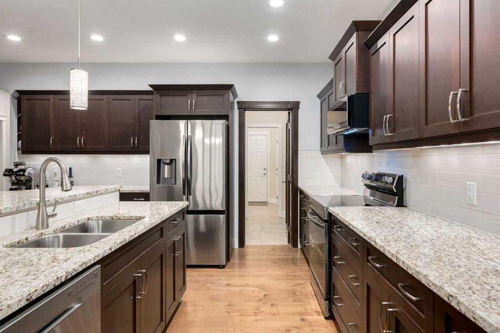 Wake up to laughter, green space & endless outdoor fun right in your backyard. BACKING ONTO a playground, bike pump track & water park, this beautifully crafted 2-storey home offers a lifestyle that’s hard to beat! Built by Executive Builders/Michaels Homes, the home showcases OVER 3200sqft of total space, quality construction & timeless finishes, including rich hardwood floors, low-E windows & meticulous attention to detail throughout. The heart of the home is its bright, open-concept main floor—designed for connection, comfort & entertaining. The kitchen is both stylish & functional with dark-stained maple cabinetry, granite countertops, a WALK-THROUGH butler pantry & a large granite island that naturally becomes the hub for homework, casual meals, or catching up with friends while dinner comes together. Open sight-lines flow seamlessly into the dining & living areas and out to the deck, creating an inviting space where family life unfolds with ease. Whether you’re cozying up by the fireplace on cooler evenings or enjoying summer days outdoors, this home is made for every season. The backyard is thoughtfully designed for entertaining and relaxation, featuring a fire pit & convenient gas hook-ups for your BBQ—perfect for hosting gatherings or unwinding under the stars. Beautiful perennials enhance both the front and backyard, adding colour, charm & low-maintenance curb appeal year after year. Upstairs, the primary bedroom is a private retreat, complete with a WALK-IN CLOSET & spa-inspired 5-PIECE ENSUITE featuring a DOUBLE VANITY, separate shower & deep soaker tub. No need to haul laundry up and down flights of stairs—the TOP FLOOR LAUNDRY ROOM adds everyday convenience. A spacious BONUS ROOM with 11\' VAULTED CEILINGS, a cozy window reading nook (w/ storage) offers the perfect flex space for movie nights, a playroom or quiet lounge. Two additional bedrooms & a full four-piece bath complete the upper level. Thoughtful extras elevate the home even further, including a well-appointed main floor office space, a functional mudroom w/ oversized closets, in-floor plug-ins in the living room to make any furniture configuration work, central vacuum system & an OVERSIZED HEATED DOUBLE ATTACHED GARAGE complete with BUILT-IN SHELVING, a WORK BENCH & an additional man-door at the rear of the garage —ideal for projects, hobbies, organized storage & yard maintenance . The unfinished basement offers a blank canvas ready for your vision—already enhanced with roughed-in IN-FLOOR HEATING for year-round comfort, whether you dream of a future additional family room, home gym, guest space, or creative retreat. Additional highlights include REFRESHED interior paint (November/December 2025), NEW KITCHEN APPLIANCES (2023), NEW WASHER & DRYER (2024) & NEW CLASS 4 SHINGLES (2024). Set in a sought-after NW location in High River. Close to excellent schools, scenic walking paths, a golf course, shopping & more— this isn’t just a house, it’s a place where memories are made & lifestyles thrive.