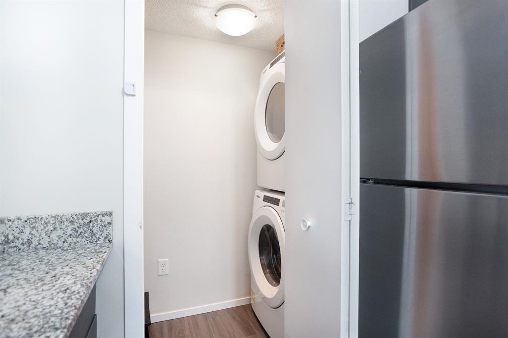 The primary bedroom includes a walk-through closet and private ensuite. A second bedroom and full bathroom provide excellent privacy for guests, roommates or family. Additional features include in-suite laundry, luxury vinyl plank and carpet flooring. Visitor parking is available.