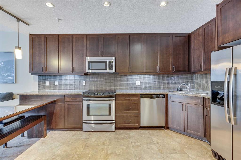 1 BEDROOM | 1 BATHROOM | 573 SQ FT | OPEN FLOOR PLAN | FULLY FURNISHED | TITLED UNDERGROUND PARKING | AMENITY RICH BUILDING | Furnishings are available for inclusion in the purchase price. Located in the sought-after Nuera building in the heart of the Beltline, this stylish 1-bedroom, 1-bathroom condo offers 573 sq. ft. of modern living space. This home comes complete with all furniture, including a TV, Dyson vacuum and everything to take the keys and move right in! The open-concept layout features a spacious living area with large windows and an east-facing balcony, perfect for enjoying your morning coffee. The kitchen boasts granite countertops, contemporary cabinetry, a breakfast bar, and stainless steel appliances. The generously sized primary bedroom includes a walk-in closet with custom organizers and large windows allowing in an abundance of natural light. Convenience is key with in-suite laundry, titled underground parking, and an assigned storage locker. Nuera offers top-tier amenities, including a fitness centre, party room, bicycle storage, secured parking, and visitor parking. This adult only, pet-friendly, professionally managed building is just steps from parks, shopping, dining, and Calgary’s downtown core. Ideal for first-time buyers or investors—book your showing today!