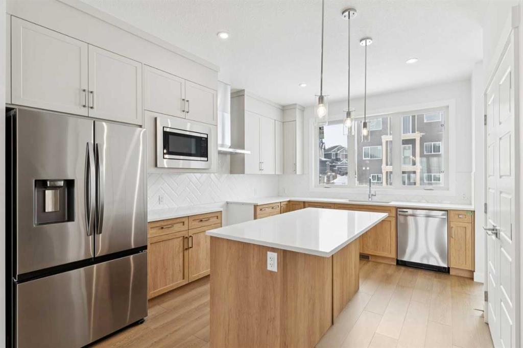 Discover the Peyto by NuVista Homes in Vermilion Hill, offering 1,709 sq ft of functional and well-designed living space. This 3-bedroom, 2.5-bath home features 9’ ceilings and an open-concept layout filled with natural light. The kitchen is equipped with quartz countertops, extended cabinetry, and upgraded Samsung appliances, seamlessly connecting to the main living areas. A side entrance provides future development potential. Upstairs, the primary retreat includes a walk-in closet and private ensuite, complemented by two additional bedrooms, upper-level laundry, and linen storage. Enjoy outdoor living on the rear deck, with a detached double garage completing the home.