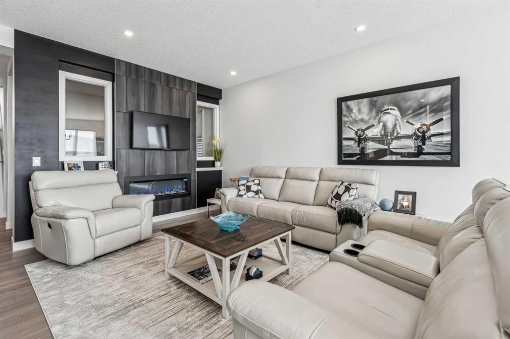 **OPEN HOUSE - Saturday, Feb 7 - 1:00 - 3:00 pm *** Welcome to this exceptional four-level split home in Glacier Ridge, proudly named Calgary’s 2022 BILD Community of the Year. Thoughtfully designed with modern style and everyday livability in mind, this residence showcases high-end builder upgrades, energy-efficient systems, and integrated smart-home technology throughout. The bright, open-concept main floor is filled with natural light from triple-pane windows that enhance comfort and efficiency year-round. The kitchen is a true centrepiece, featuring quartz countertops, premium stainless steel appliances, a large island with seating for four, sleek two-tone cabinetry, and a spacious walk-in pantry. French doors with built-in blinds lead to the rear patio, complete with a gas BBQ hookup. The dining and living spaces flow seamlessly, anchored by a striking two-sided Napoleon electric fireplace—ideal for both entertaining and everyday living. An office nook and stylish two-piece bathroom complete this level. Upstairs, the private primary retreat is introduced through double French doors and offers a generous walk-in closet, elegant Dimplex fireplace, and a spa-inspired ensuite with glass shower, modern fixtures, and dual vanities. The third level features two additional bedrooms, a full bathroom with double vanity, and a versatile family room—providing the perfect balance of connection and separation for busy households. The basement adds outstanding future potential with 9-foot ceilings, egress-sized windows, and bathroom rough-ins, making it ready for additional bedrooms or recreation space. Outside, the home is fully landscaped and fenced, with a front double attached garage offering secure parking and extra storage. Notable upgrades include solar panels for sustainable, cost-saving energy, an on-demand hot water system, smart thermostats, app-controlled lighting, and an Amazon Echo Show—all designed for comfort and convenience. Triple-pane windows further enhance insulation and sound control. Located in the master-planned Glacier Ridge community, inspired by the Rocky Mountains, residents enjoy access to scenic walking paths, green spaces, and future schools, shopping, and recreation. The location also provides quick access to Stoney Trail, Costco, and Creekside Shopping Centre. With its functional layout, upscale finishes, and forward-thinking features, this home truly stands out. Book your private showing today and experience the best of Glacier Ridge living.