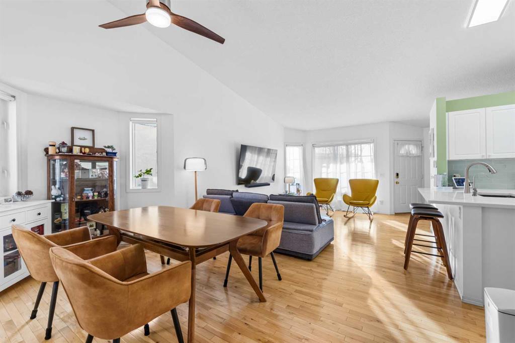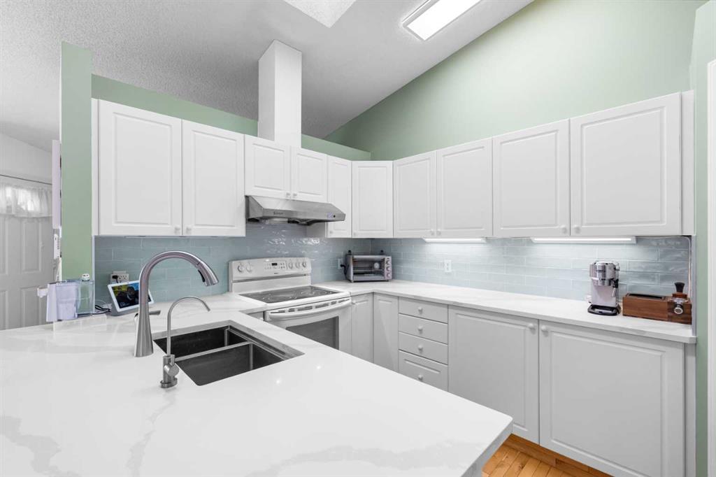 A rare opportunity to own in this highly sought-after complex in the community of Harvest Hills. This immaculate bungalow villa is ideally suited for empty nesters and offers an attached single garage with a paved driveway providing additional parking. This property is not a condominium. Affordable monthly HOA fees of $231 include snow removal, landscaping and lawn care, common area maintenance, common insurance, and professional management. Located in a quiet and desirable 55+ age-restricted community where homes are seldom available, this residence demonstrates exceptional pride of ownership. Numerous recent upgrades include brand-new roof shingles (2025), brand-new eavestroughs (2025), a water pressure monitor (2025), comprehensive Poly B pipe replacement throughout the property (2022), a reverse osmosis system (2022), fresh paint throughout (2022), quartz countertops throughout (2022), an upgraded 800 CFM hood fan (2022), a new kitchen skylight (2024), and upgraded kitchen lighting (2026). Situated on a peaceful cul-de-sac, the home features a bright and open-concept main floor with vaulted ceilings in the living room, dining area, and kitchen. The recently renovated gourmet kitchen is beautifully appointed with quartz countertops, a glass subway tile backsplash, under-cabinet lighting, a powerful hood fan, and a generous pantry—ideal for both daily living and entertaining. Natural oak hardwood flooring and abundant natural light enhance the main level throughout. The main floor offers 944 sq. ft. of thoughtfully designed living space, including two bedrooms and a 4-piece main bathroom. The spacious primary suite features a walkthrough closet, while the generous second bedroom includes a large window and an exterior French door leading to a full-width deck overlooking the backyard and adjacent green space. The fully developed basement provides a large family/recreation room with a cozy free-standing fireplace, a spacious bedroom, a 3-piece bathroom, ample storage, and built-in shelving in the laundry/utility area. The recreation room can easily be reconfigured to accommodate a fourth bedroom, if desired. Enjoy quiet summer evenings on the private deck, take in beautiful sunsets, and even admire the Northern Lights from the comfort of your home. This exceptional property offers a serene setting with easy access to public transit and convenient routes to Country Hills Boulevard, Deerfoot Trail, and Stoney Trail. Located within minutes to T&T Supermarket, Tim Hortons, McDonald’s, Superstore, Sobeys, and much more! Be sure to view the Virtual Tour for a complete experience. Don’t miss this opportunity to own this Beautiful Home!