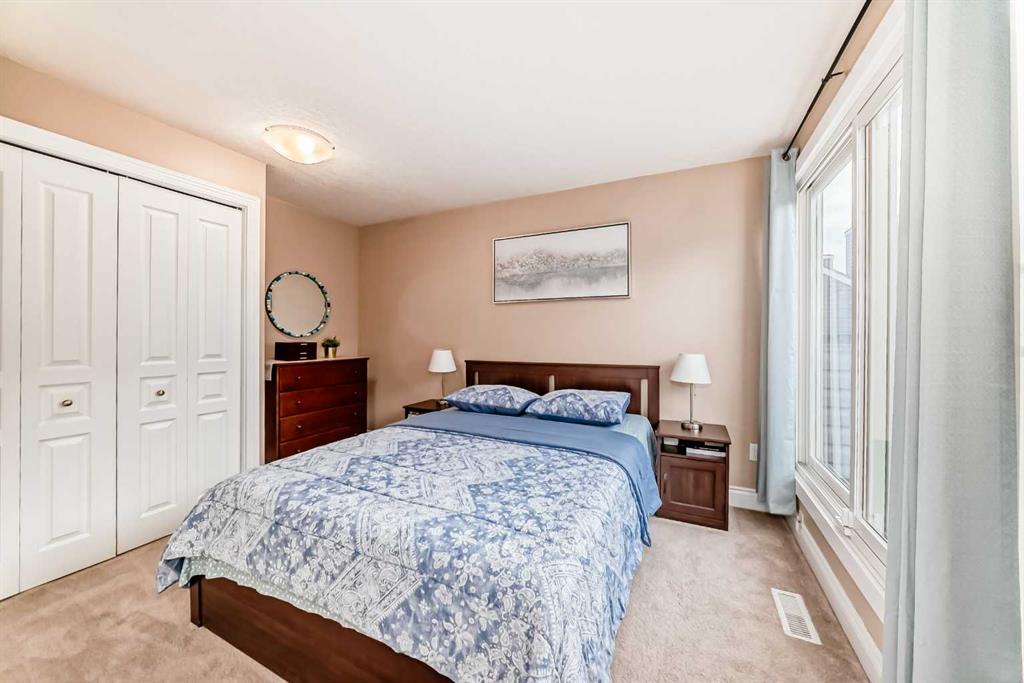 The main level is bright and spacious, featuring beautiful hardwood flooring throughout. The modern kitchen offers granite countertops, lots of cabinetry, additional pantry, and a breakfast bar overlooking the living and dining areas. Enjoy the sunshine through a large picture window in the living area and unwind in front of the cozy gas fireplace at the end of a long day. An additional living/dining/office space is conveniently located down the hall, with direct access to an expansive, private and low maintenance deck - perfect for Calgary’s long summer evenings. A 2-piece bathroom completes the main level.