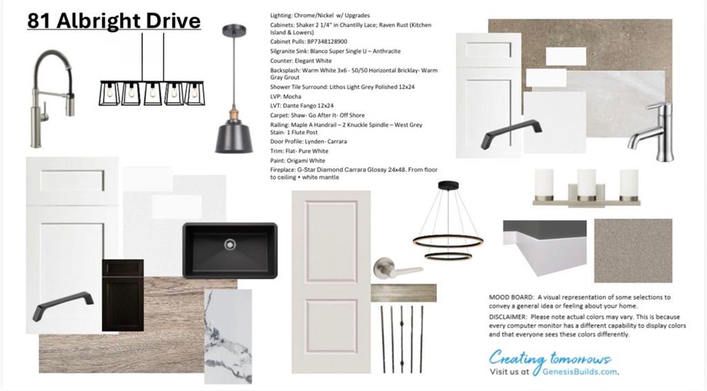 Welcome to 81 Albright Drive, presented by Genesis Builder Group, scheduled for completion in March 2026. Offering over 1900 sq ft of beautifully designed space with 3 bedrooms, 2.5 bathrooms, on a desirable lot backing onto a walking path. Stepping inside to 9’ ceilings, luxury vinyl plank flooring that spans the open concept main floor. The spacious kitchen is equipped with stainless steel appliances and a central island with an adjacent dining room, making it ideal for entertaining guests or enjoying family meals. The living room, with its inviting focal-point fireplace, is a space to unwind, and it seamlessly flows into your outdoor space, where a completed deck off the living area provides a perfect spot for outdoor relaxation. A convenient powder room completes the main level. Upstairs, a central bonus room offers separation from the primary suite and additional bedrooms. The primary bedroom boasts an ensuite bathroom with dual sinks, a soaker tub, a separate shower and a spacious walk-in closet, offering a private retreat. Two further bedrooms are generously sized, featuring their own walk-in closets and are complemented by a four-piece bathroom and an upstairs laundry for added convenience. The basement offers 9’ ceilings and is unspoiled, waiting for your design ideas. Located in the vibrant community of Harmony, residents enjoy a wealth of amenities and outdoor recreational opportunities. The community features scenic walking trails, parks, and access to various recreational facilities, fostering an active and connected lifestyle. With its excellent location, Harmony offers easy access to shopping, dining, and entertainment, making it an ideal place to settle down or invest in your future. Don’t miss the opportunity to own a brand new home in this thriving community. *RMS has been converted from the builder\'s blueprints, and taxes are to be assessed.