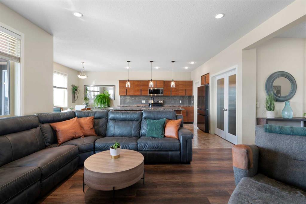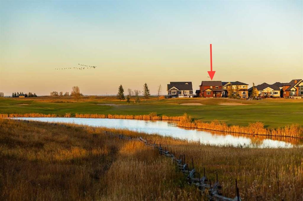 Prepare to love this spacious two-story home, with a sunny southwest-facing yard that backs onto Muirfield Lakes Golf Course. With breathtaking views from dawn to dusk, this move-in-ready home is designed for both comfort and functionality. The bright, open main floor centers on a generous great room featuring a beautiful fireplace and walls of windows that flood the space with natural light and golf course vistas. The stylish kitchen showcases an extended island perfect for gathering, while the dining area opens to a large covered deck—an ideal spot to relax or entertain. A walk-through pantry leads to the mudroom, ensuring seamless daily convenience, and the tech room/office just off the kitchen provides a quiet workspace for work or study. Upstairs, the thoughtful layout continues with three generous bedrooms and a spacious bonus room. The primary suite is a true retreat, featuring a spa-like ensuite that flows into the walk-in closet and connects directly to the laundry room, making chores effortless. Two additional well-sized bedrooms and a full bath complete this level. Completing this exceptional home is the heated, oversized double garage, offering ample space for a workbench or extra storage—perfect for hobbyists or those needing extra room for gear and equipment. Located in the prestigious Lakes of Muirfield, this home blends stunning views, smart design, and modern convenience—ready for you to enjoy! Just 20 minutes for Calgary, Strathmore & Airdrie.