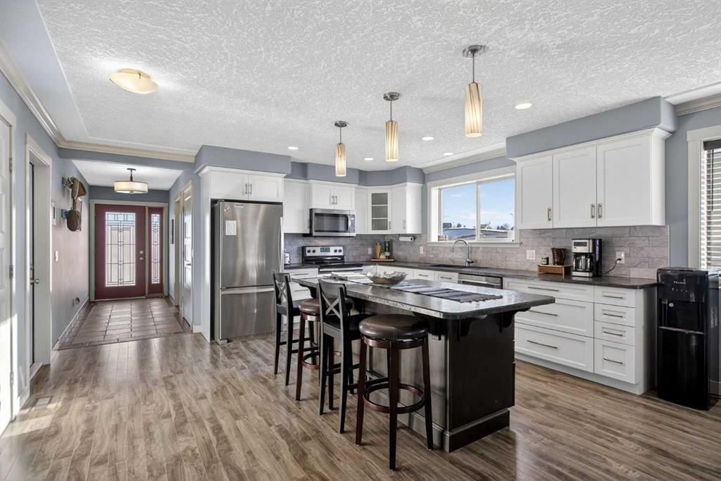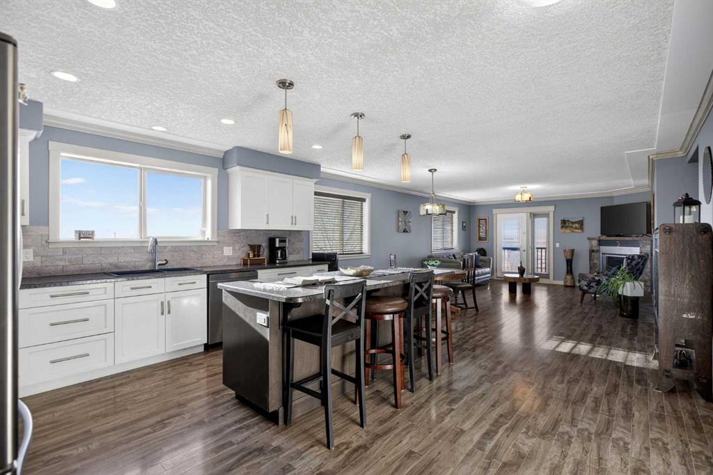 Open house Sat Feb 14 & Sun Feb 15 @11-2pm! This meticulously crafted & energy efficient designed custom-built walk-out bungalow (2016) offers the perfect blend of modern comfort, accessibility & small-town living. A total developed area of 2117sqft & sits on an expansive 11,123 sq ft lot. On a quiet street, on the west-side of Standard. With 1,611.64 sq ft on the main level, the open-concept layout is bright & welcoming. Featuring oversized windows, durable luminate flooring, & a tiled entry designed for easy cleaning & everyday practicality. The living area is anchored by a sleek gas fireplace with concrete mantle. Creating a warm focal point for relaxing or entertaining. The spacious L-shaped kitchen offers abundant storage with soft-close cabinetry, built in garbage bins, stainless steel appliances. A window above the sink to capture morning sunlight, & a custom extra wide windowsill—perfect for herbs/plants. A generous laundry room with pantry space with dual doors adds everyday convenience. The primary bedroom is a peaceful retreat, complete with his-&-hers closets tucked behind a stylish sliding barn door & a large 6-piece dual-access ensuite. 2 additional bedrooms complete the main floor, with 36-inch interior doors throughout, offering excellent accessibility. Partially finished basement is warmed with in-floor heating & includes a custom bar with built-in cabinetry. A usable toilet (sink and shower/tub rough-ins for your future imprint), workshop space with built in work area/ shelves, & a separate side entrance with driveway access—ideal for future development or multi-use living. Outside, enjoy low-maintenance landscaping, raised garden beds, a picnic area for sunrise breakfasts. A 10’x16’ upper & lower deck with natural gas plug, fire pit, compost area, & a beautifully color-matched custom shed. Comes with the exterior Christmas lights that have control switch inside. The exterior showcases vinyl siding, cedar shake accents & durable Smart Board on below grade. Did I mention the beautiful prairie sunset/sunrise view as far as the eye can see & the occasional fascinating cloud display! Notable upgrades: include staggered stud 8” exterior walls with R25 insulation, heated basement floors, soft-close cabinetry throughout, closet organizers, 36\' wide interior doors, separate entry to the basement, side door & window in the garage, extra wide window sills, built in garage bins, 6 foot long bathtub, A/C rough-in & workbenches in both the basement & garage. New appliances; hot water tank & dishwasher (Nov 2025). Furnace & duct serviced Oct 30,2023. The property backs onto a water catchment, offering privacy & open views. Located just 25 mins to Strathmore or Rosebud Theatre & approximately 70 mins to Calgary/the airport. With local amenities including grocery store, bank, library, registration office, sports arena, courts, & a nearby campground/stampede grounds—this home offers space, quality, & lifestyle in one exceptional package!